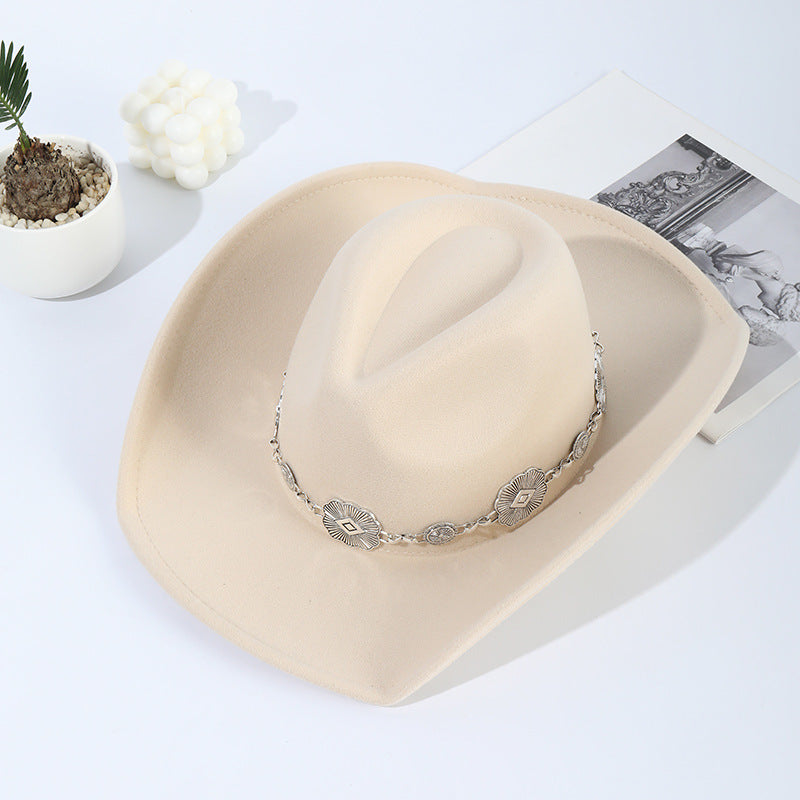 Autumn And Winter Fashion Western Cowboy Hat Alloy Accessories Broad-brimmed Hat European And American Style Curling