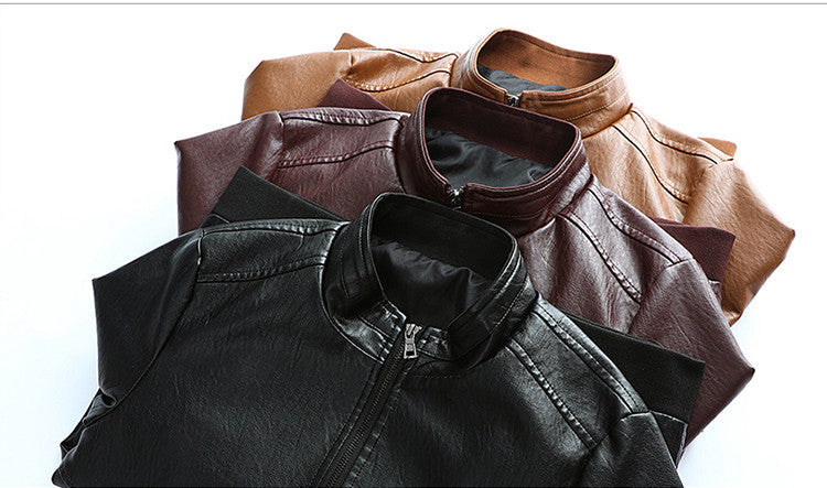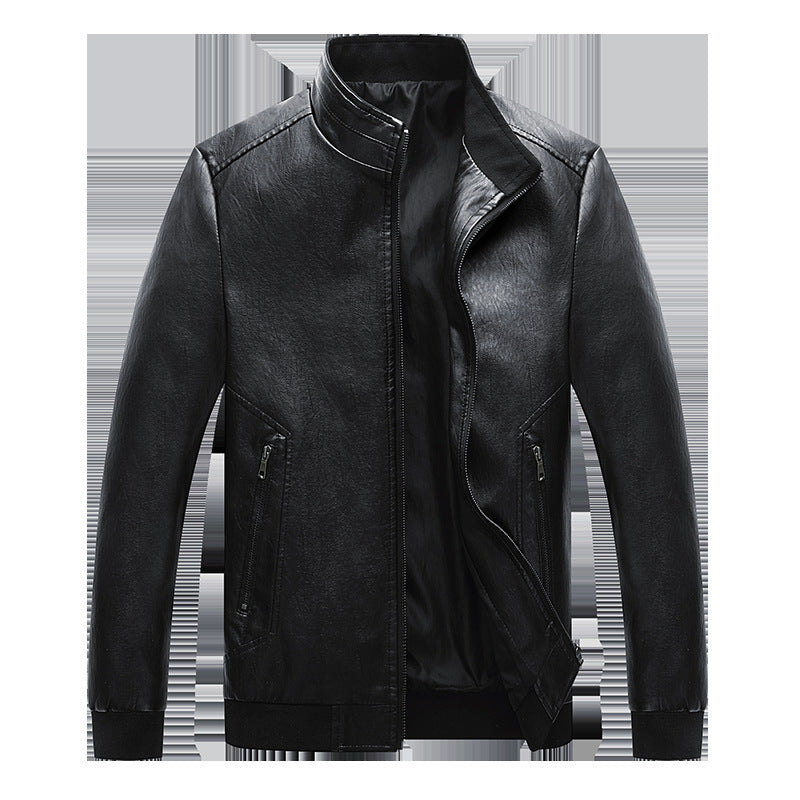 Autumn And Winter Men'S New Style Leather Jacket Korean Style Slim Stand-Up Collar Men'S Motorcycle Leather Jacket Jacket
