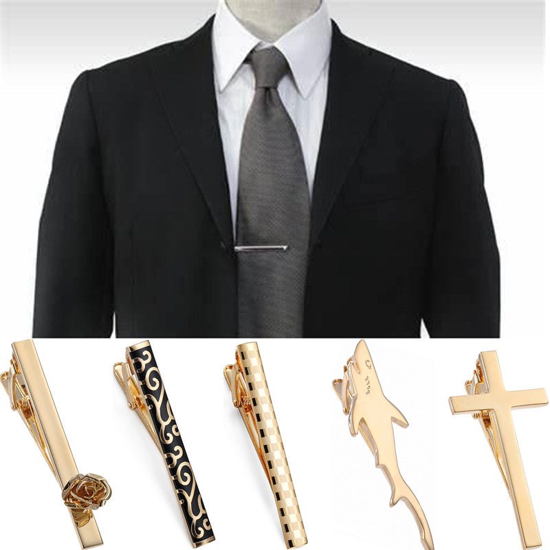 Black Enamel Silver Diagonal Stripes Tie Clip Cuff Buckle Set