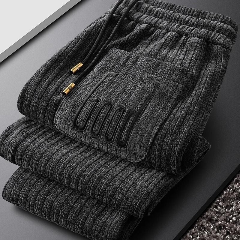 Black With Extra Lining Men's Sports Corduroy Autumn And Winter Chenille Sweatpants