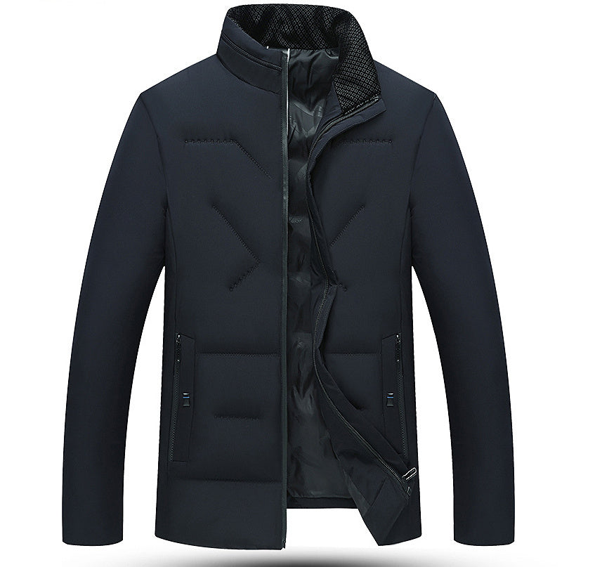 Business Stand Collar Zipper Silk-like Casual Cotton-padded Jacket