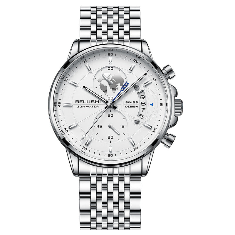Business Three-eye Timing Leather Luminous Watch Steel Band