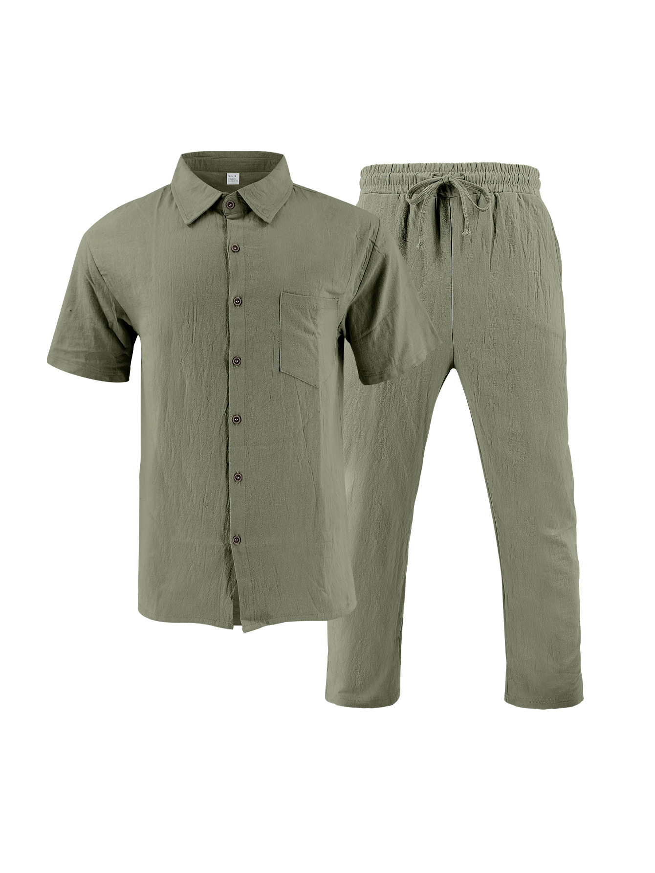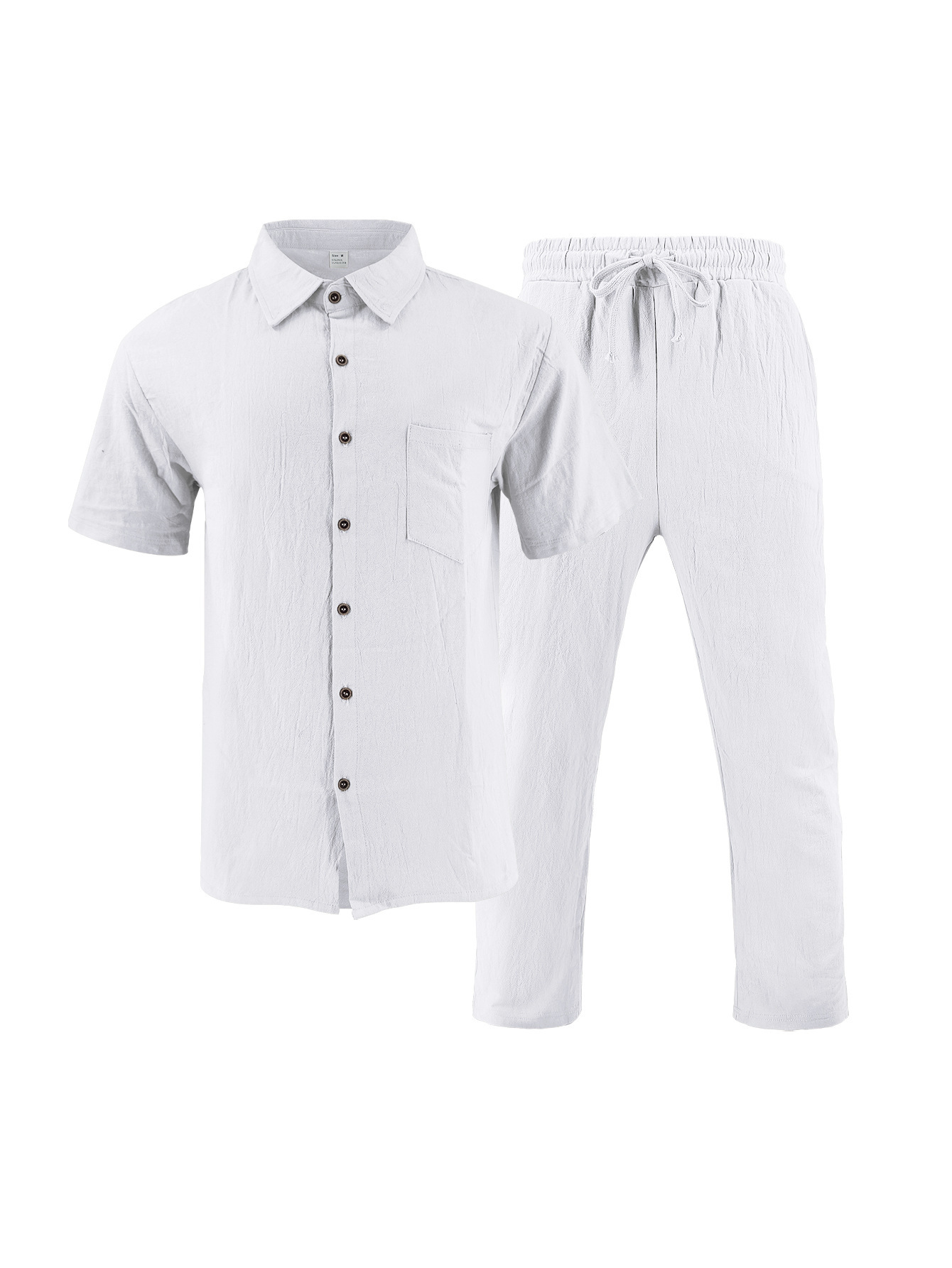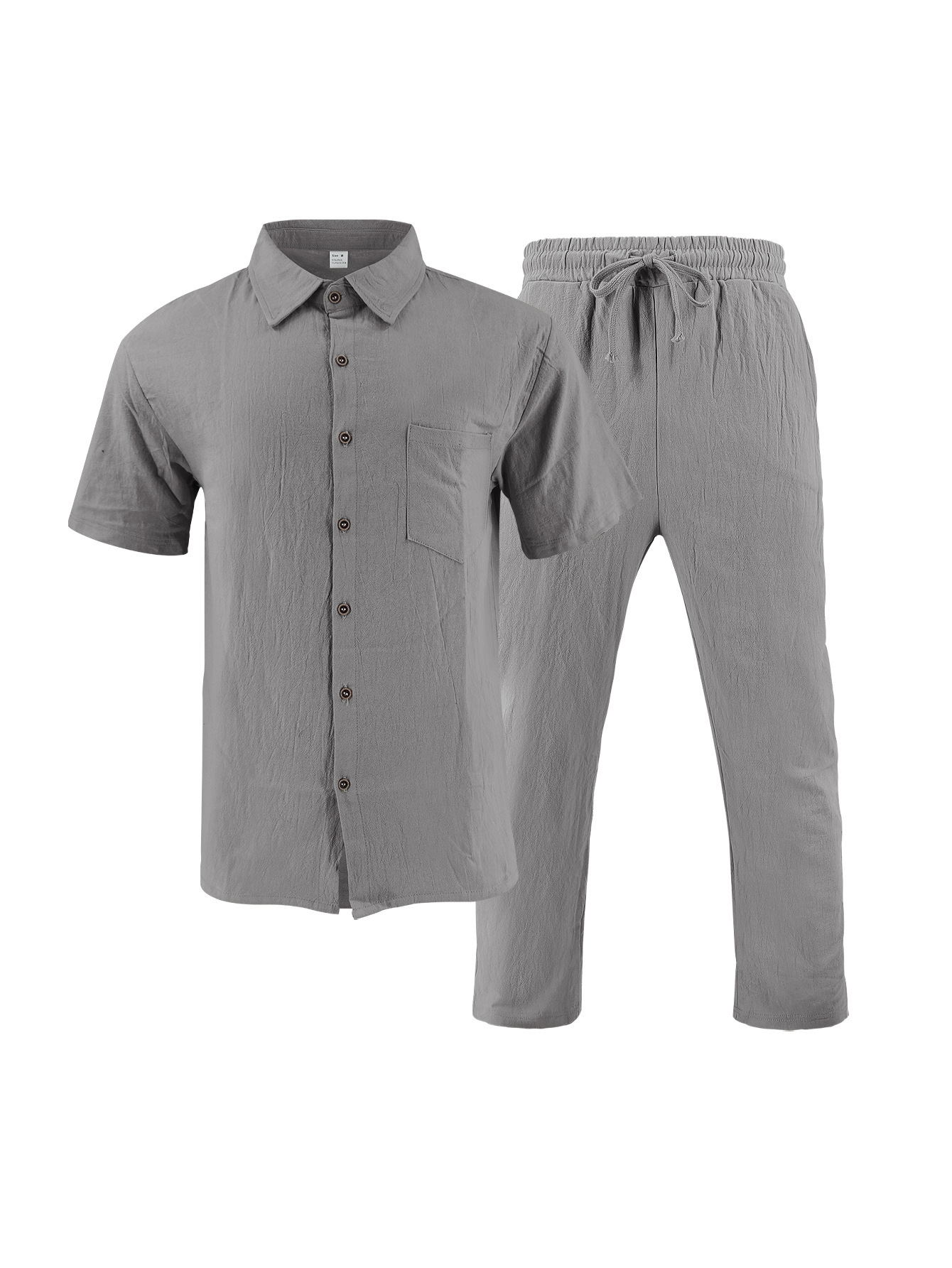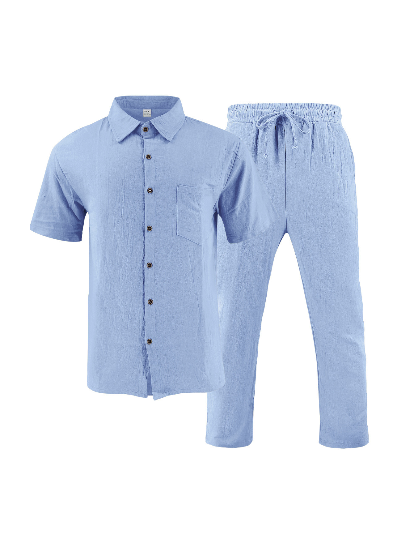 Casual And Comfortable Button Polo Short Sleeve Trousers Beach Suit