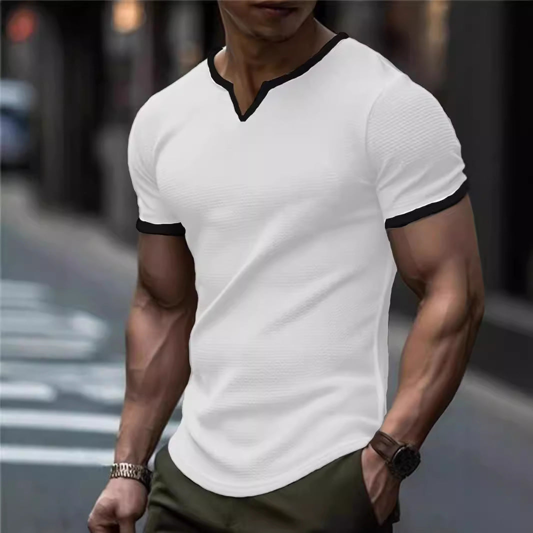 Color-block V Neck Outdoor Sports Waffle T-shirt
