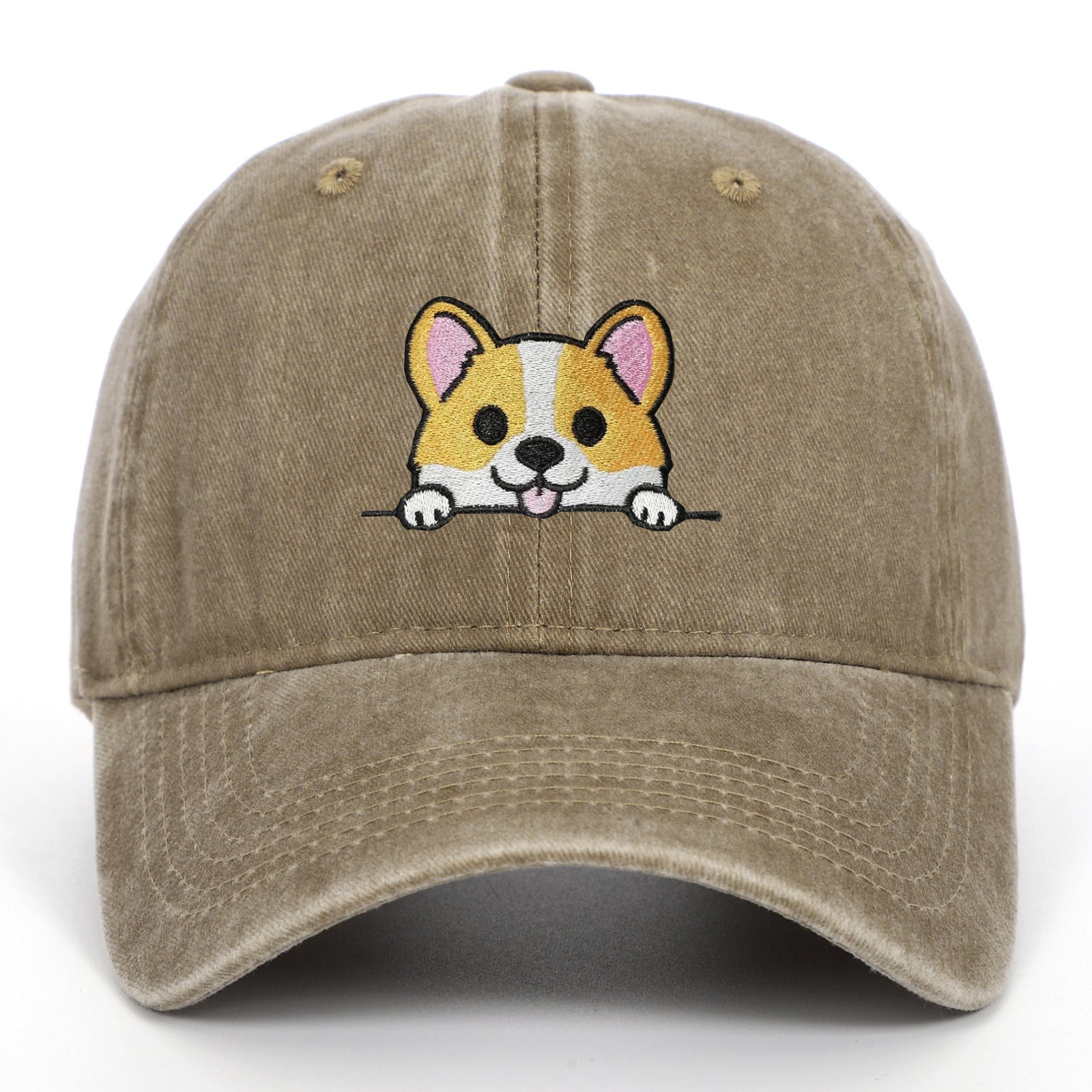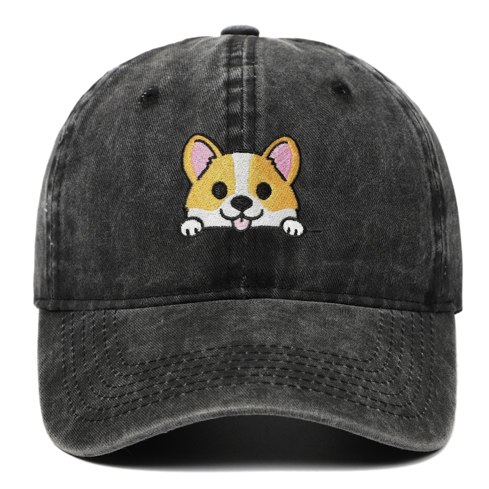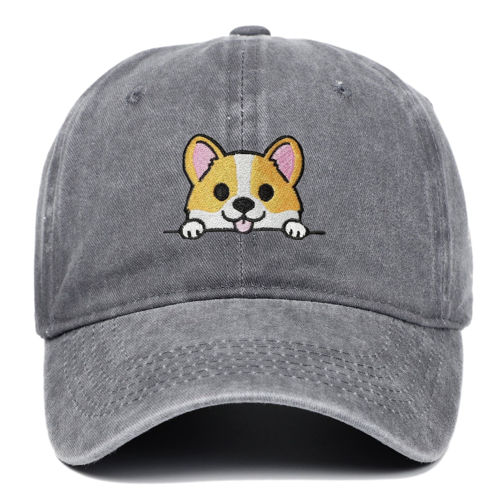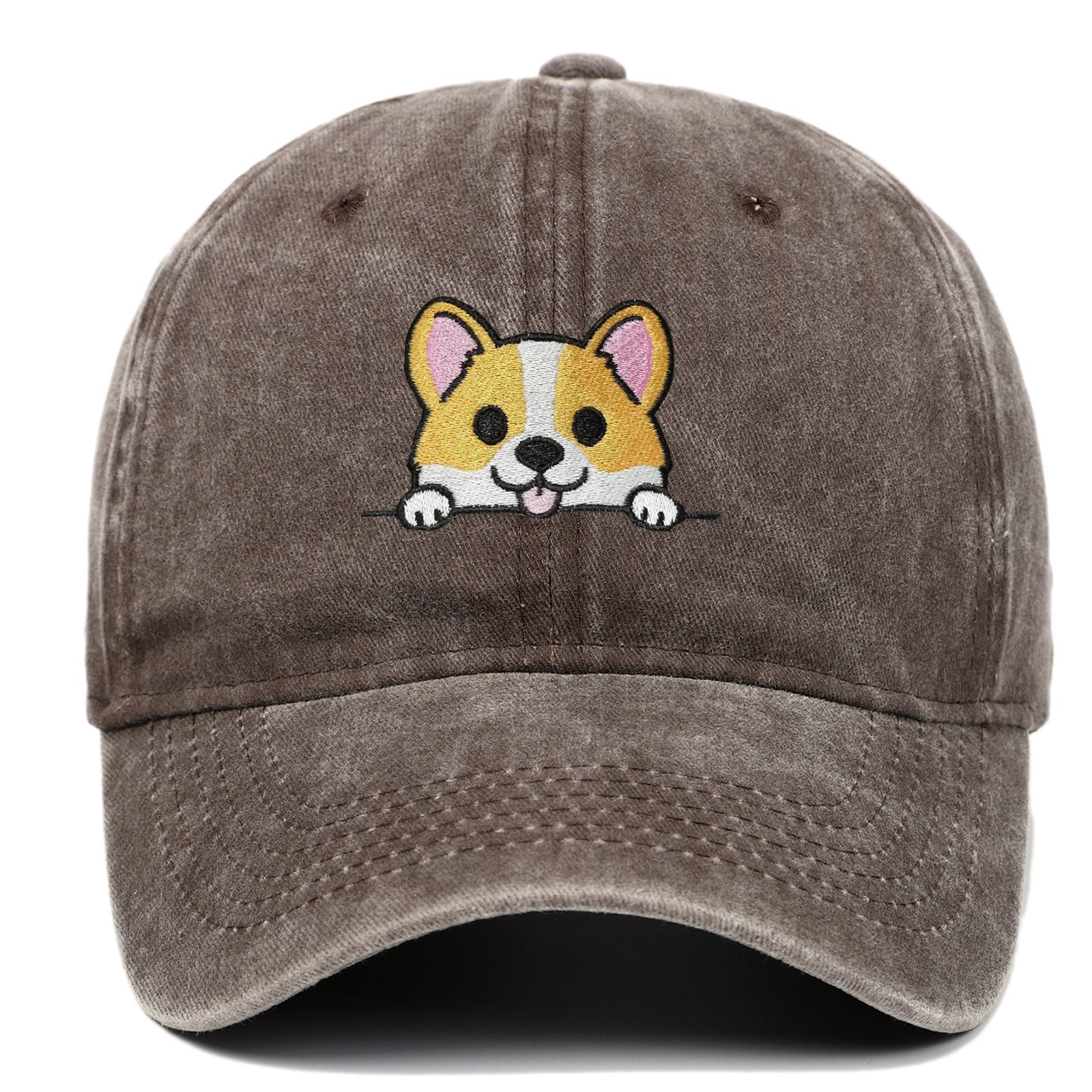 Corgi Embroidered Baseball Fashionable Washed Sports Cap