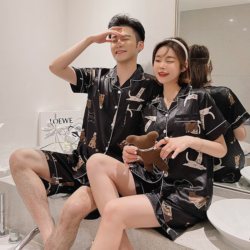 Couple Pajamas Ice Silk Summer Short-sleeved Female