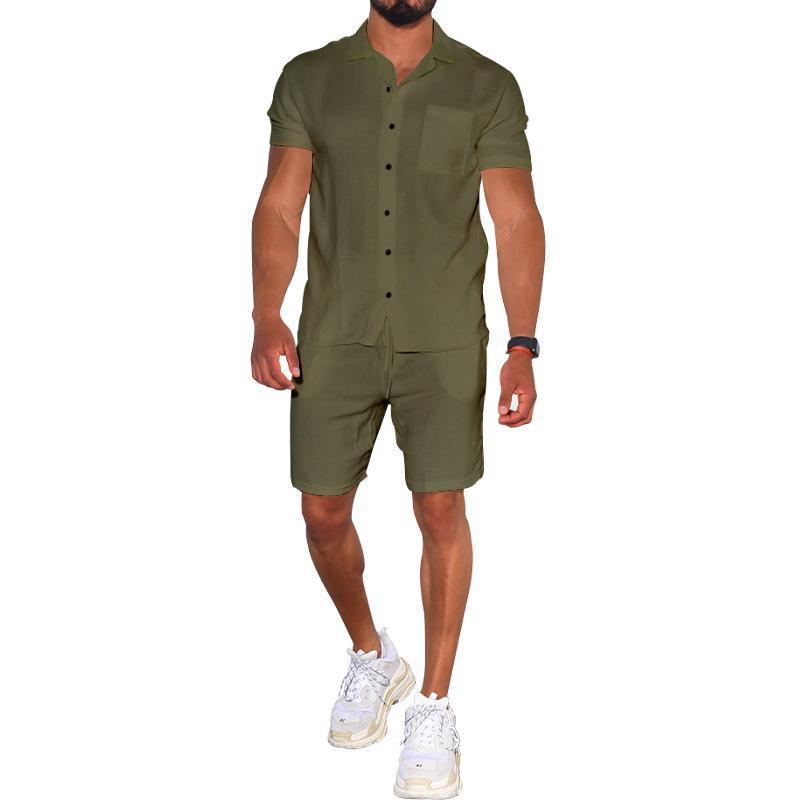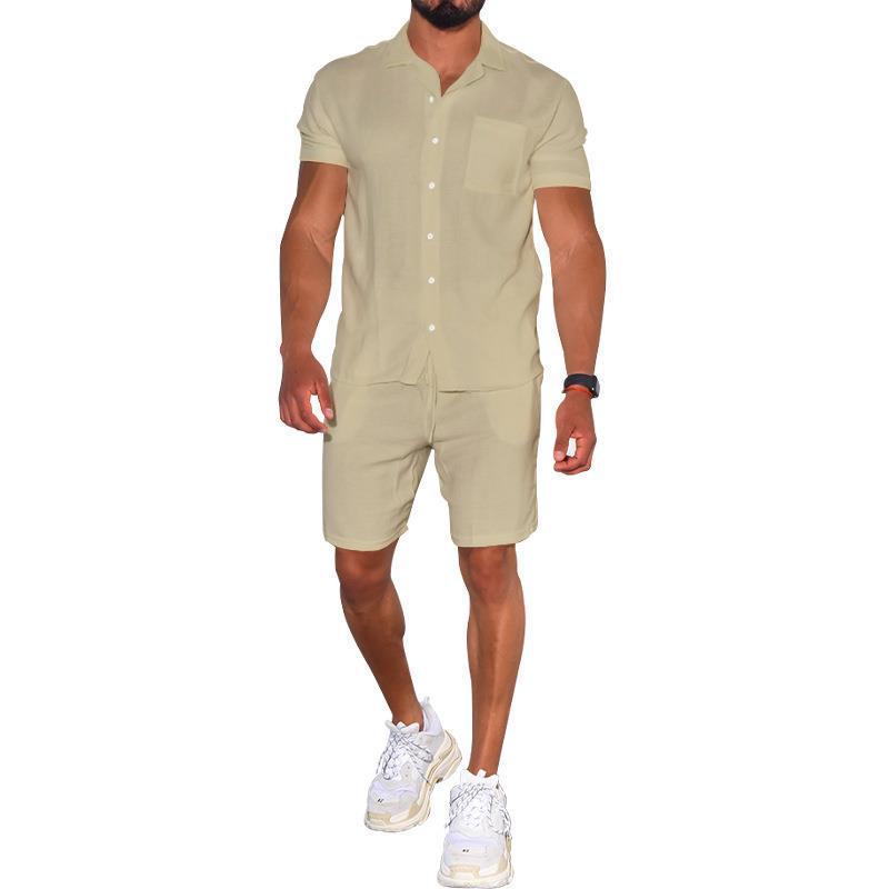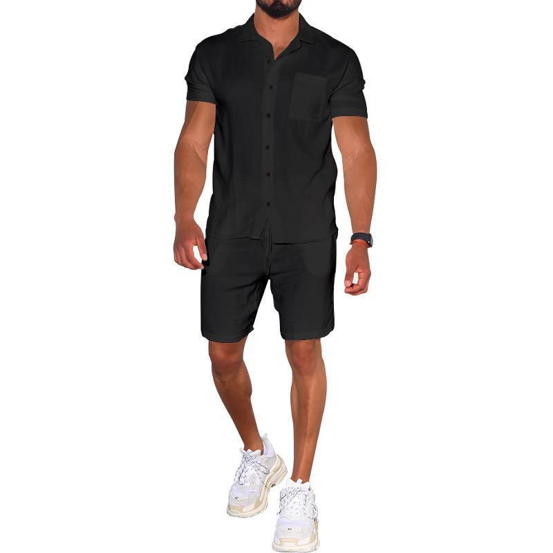 Cross-border Summer Menswear Suit Polo Collar Solid Color Short-sleeved Shorts Suit Button Four-sided Stretch Shirt