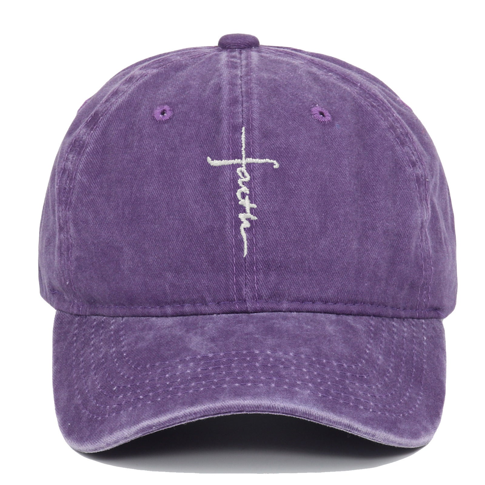 Cross Embroidery Baseball Cap Cotton Vintage Worn Looking Washed-out Baseball Cap