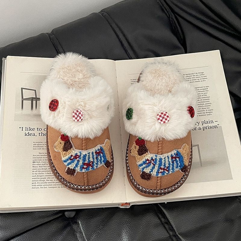 Cute Cartoon Sausage Dog Fluffy Shoes Female