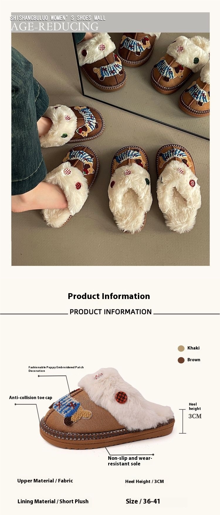 Product information: Pattern: solid color, cartoon anime Color: upgraded khaki, upgraded Brown, khaki, Brown Shoe Upper material: artificial plush Size:... Read more