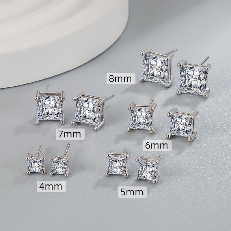 European And American Popular Square Zircon Ear Studs