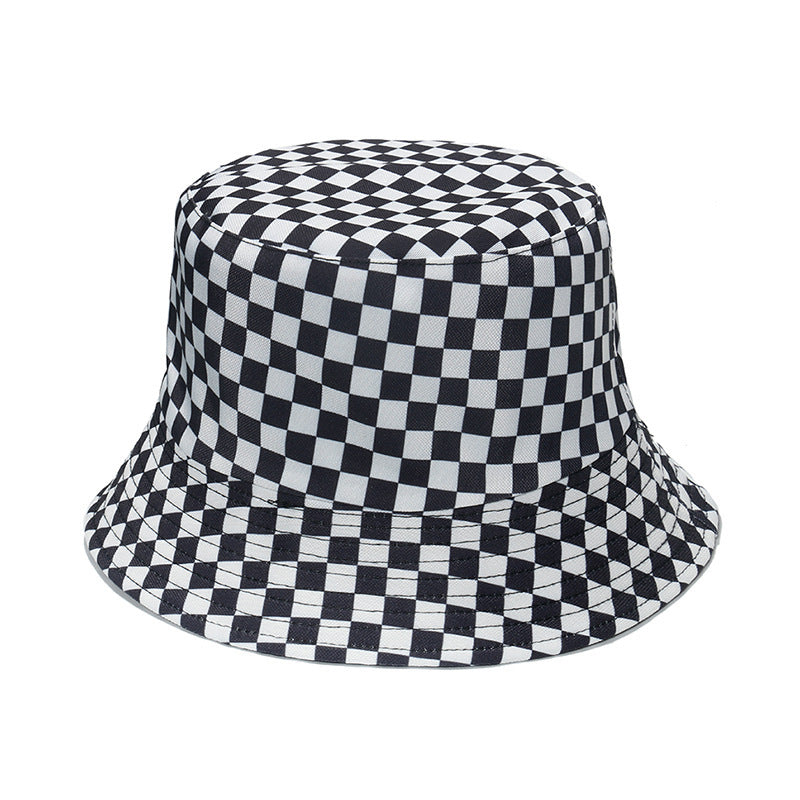 Fashion Personality Black And White Checkerboard Plaid Fisherman Hat