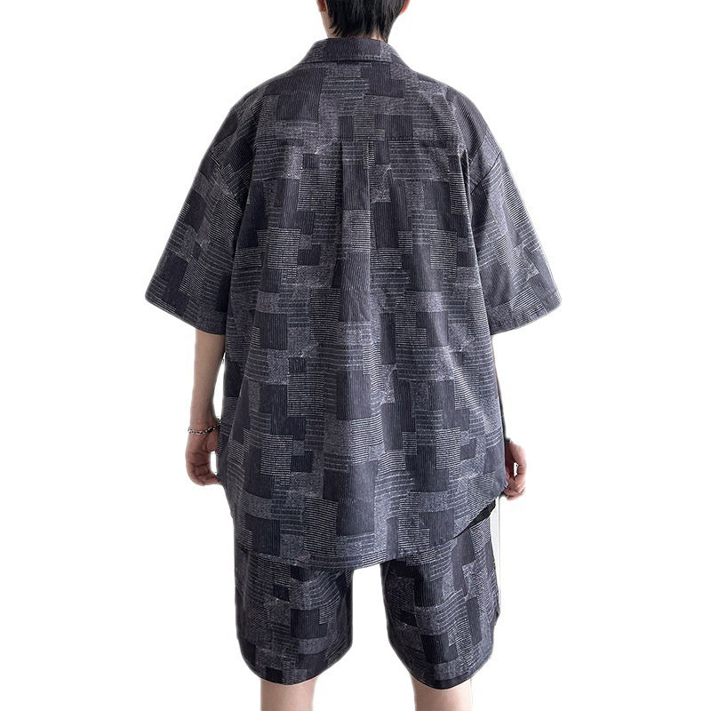 Five-point Shirt Retro Hong Kong Style Trendy Handsome Two-piece Suit