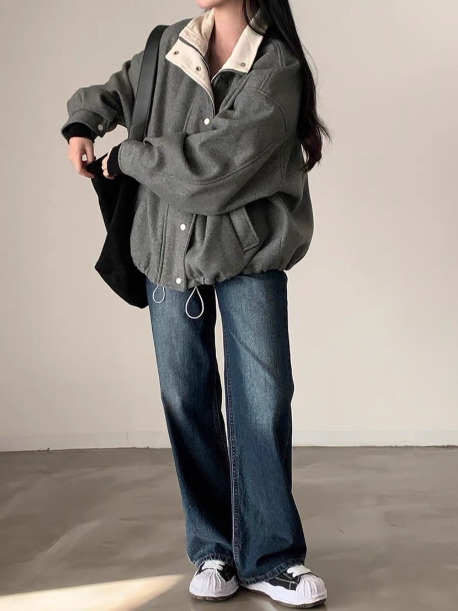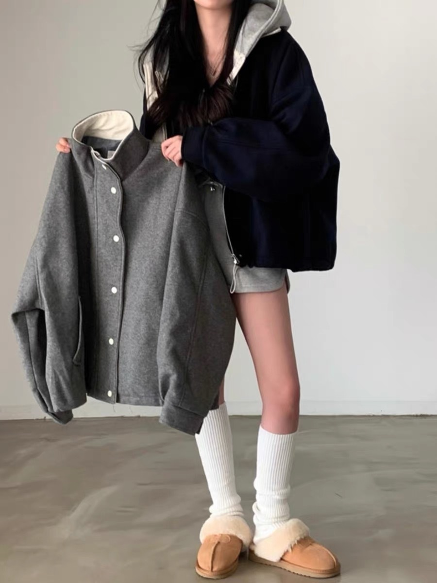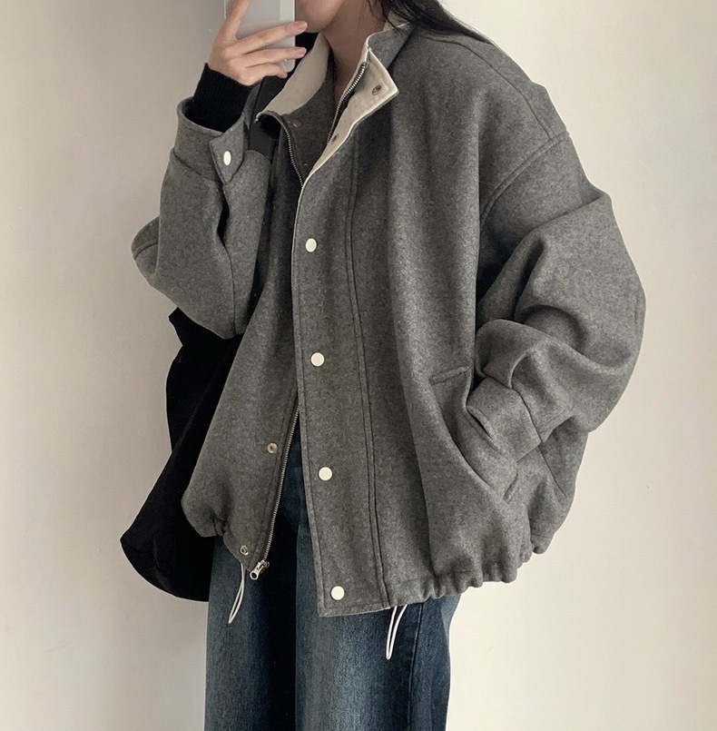 French Retro Lapels Loose Wool Coat Overcoat