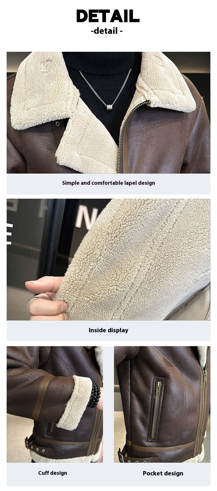 Fur Integrated Motorcycle Jacket Men's Fleece-lined Thickened Leather Jacket
