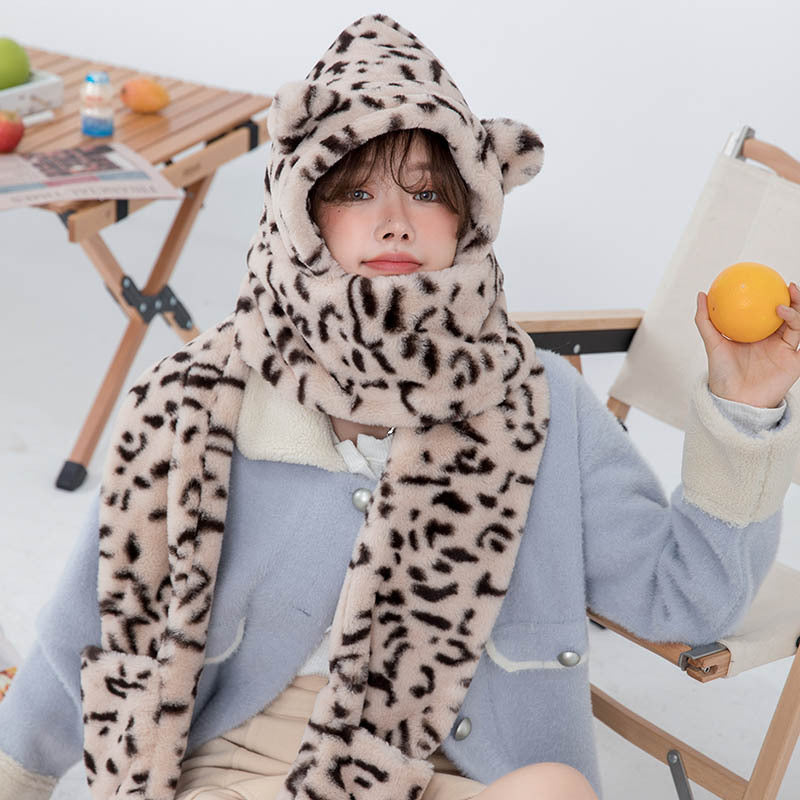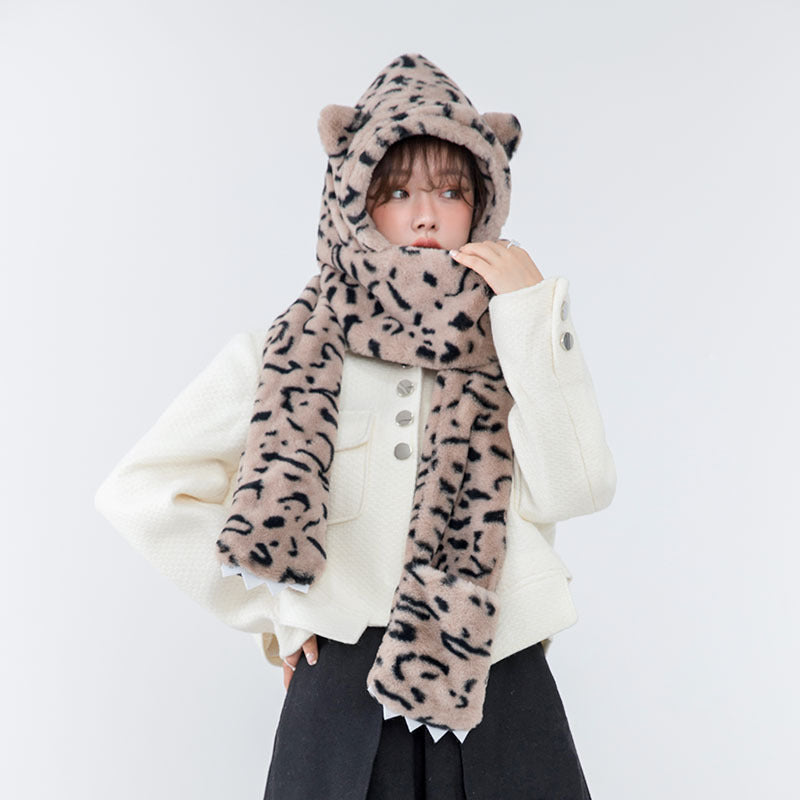 Hat Scarf With Paw Print Gloves Three In One