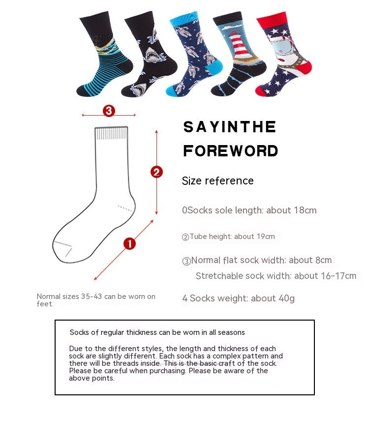 Product information: Pattern: Cartoon Color: 081,082,083,084,085 Length of socks: Middle calf Size: free size Thickness: medium Fabric name: 70 cotton... Read more