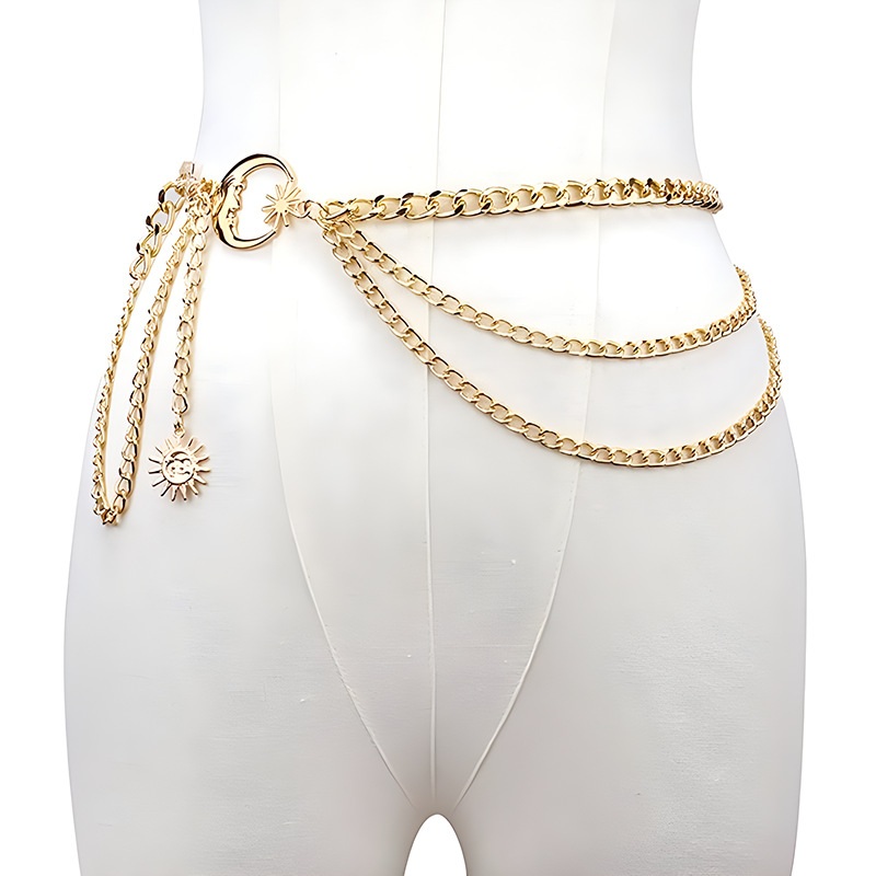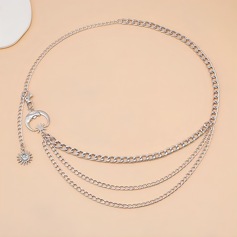 Hip Hop Metal Moon Body Chains Multi-layer Tassel Sun Pendant Street Waist Decorations