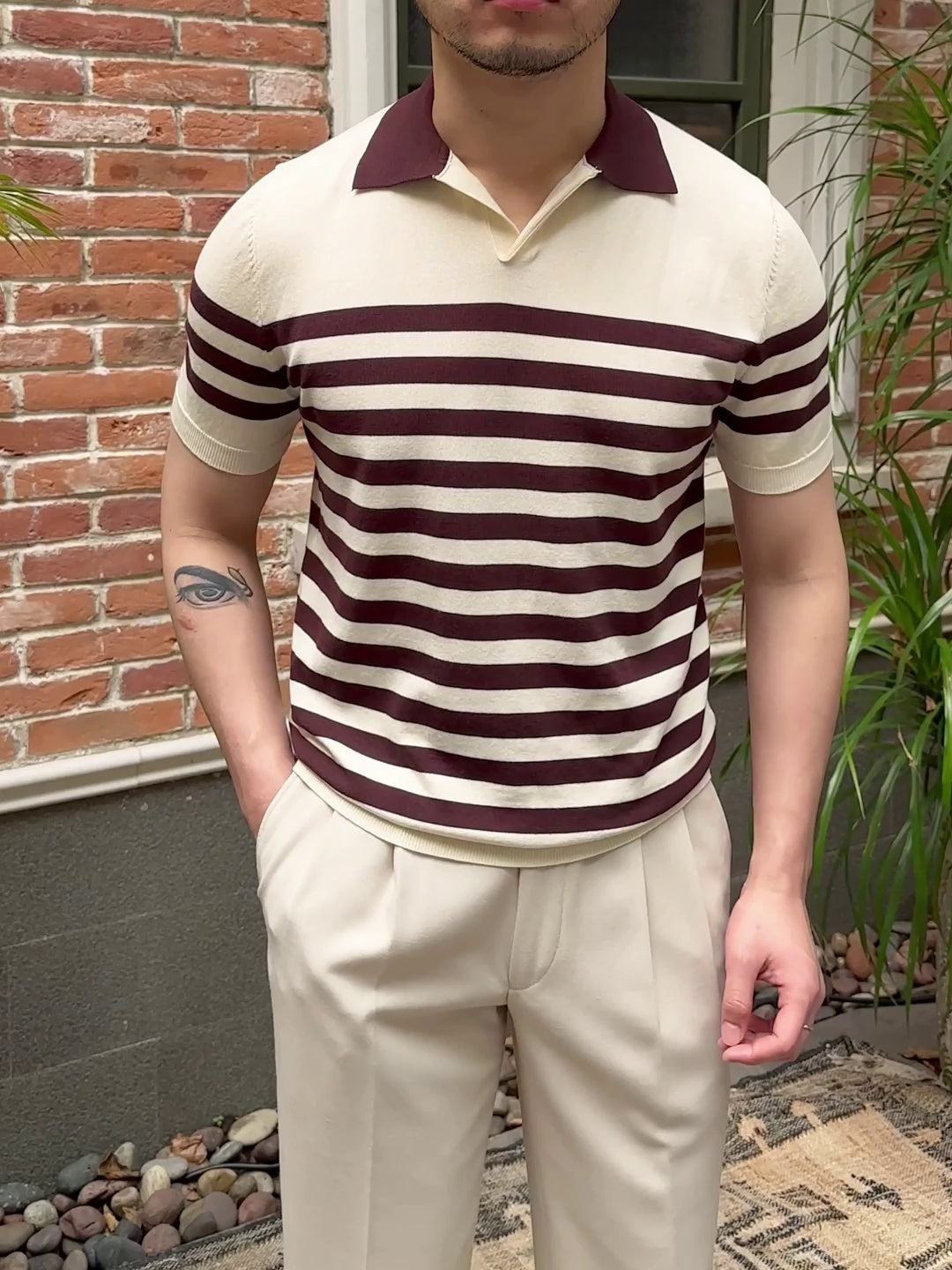 Lapel Lyocell Short Sleeve Fashion Breathable Stripes Polo Shirt