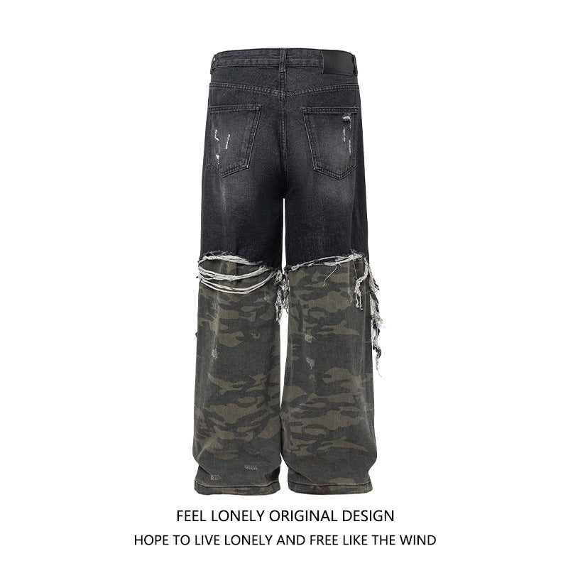 Men's American High Street Stitched Camouflage Wide Leg Jeans