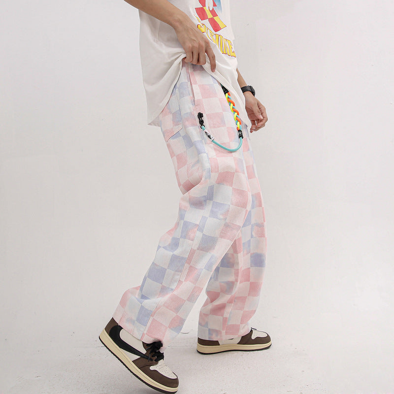 Men's And Women's Loose Straight Plaid Gradient Casual Trousers