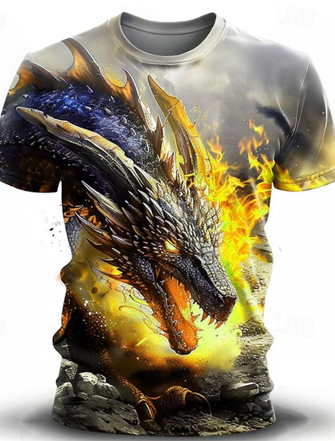 Men's Casual 3D Wind Dragon Printed Short-sleeved T-shirt