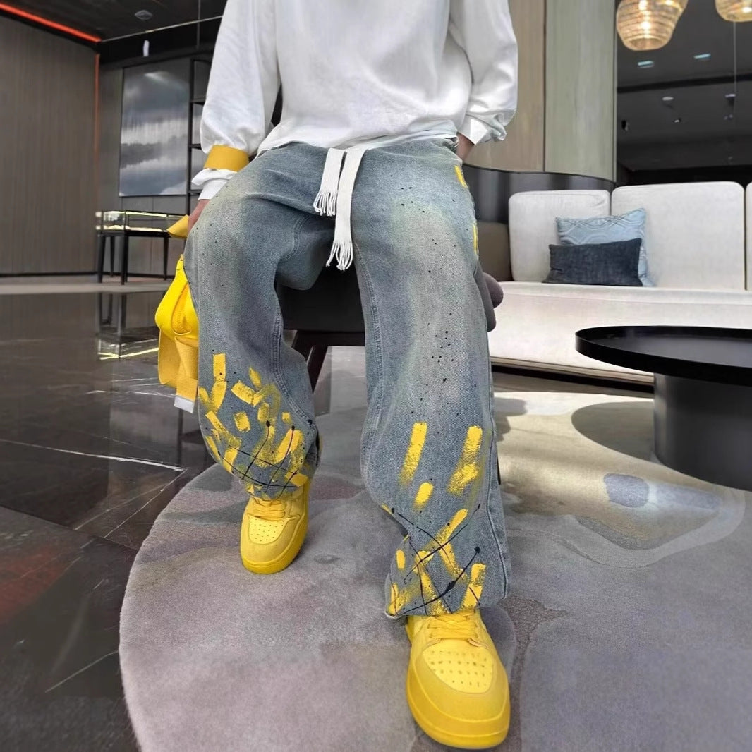 Men's Casual Jeans Hand-painted Inkjet Printing