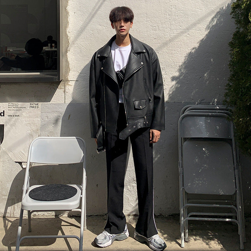 Men's Handsome Oblique Zipper Slim Leather Jacket Trendy Men