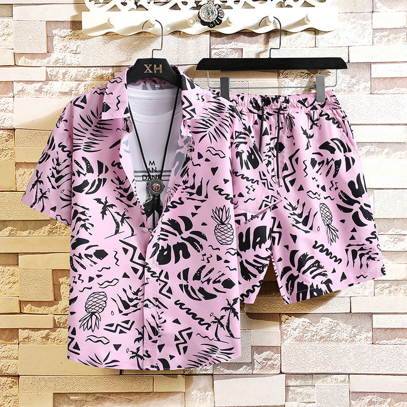 Men's Hawaiian Beach Shirt Suit Printed Loose Color