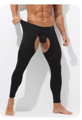 Men's Open Crotch Thermal Pants Thin Leggings Modal Autumn Winter Tight Inside Wear Free