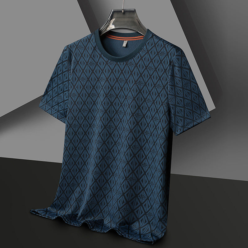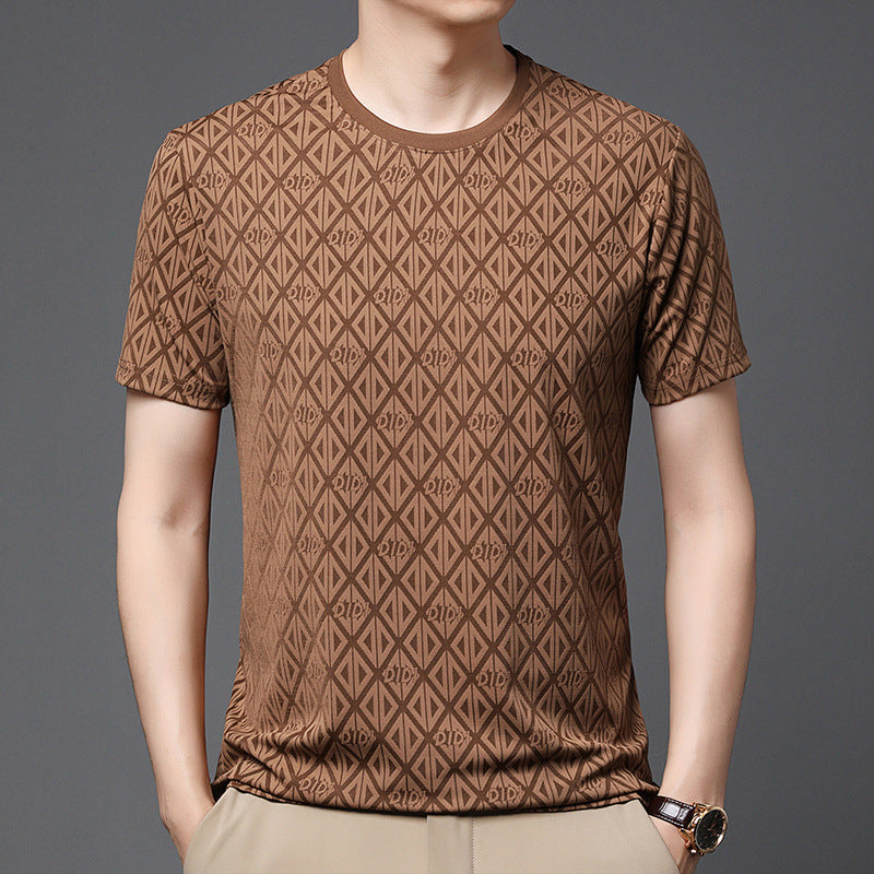 Men's Round Neck Jacquard Short Sleeve Cool Antibacterial Fashion Brand Casual Fashion Half Sleeve
