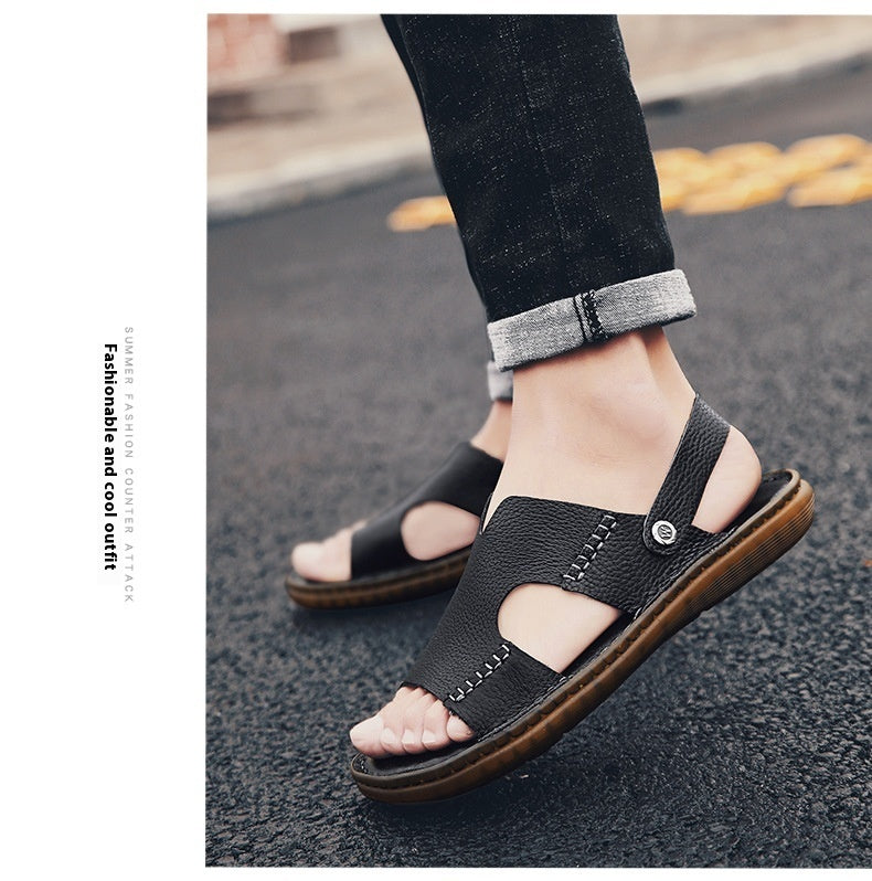 Men's Sandals Dual-use Cowhide Soft Bottom Beach Shoes