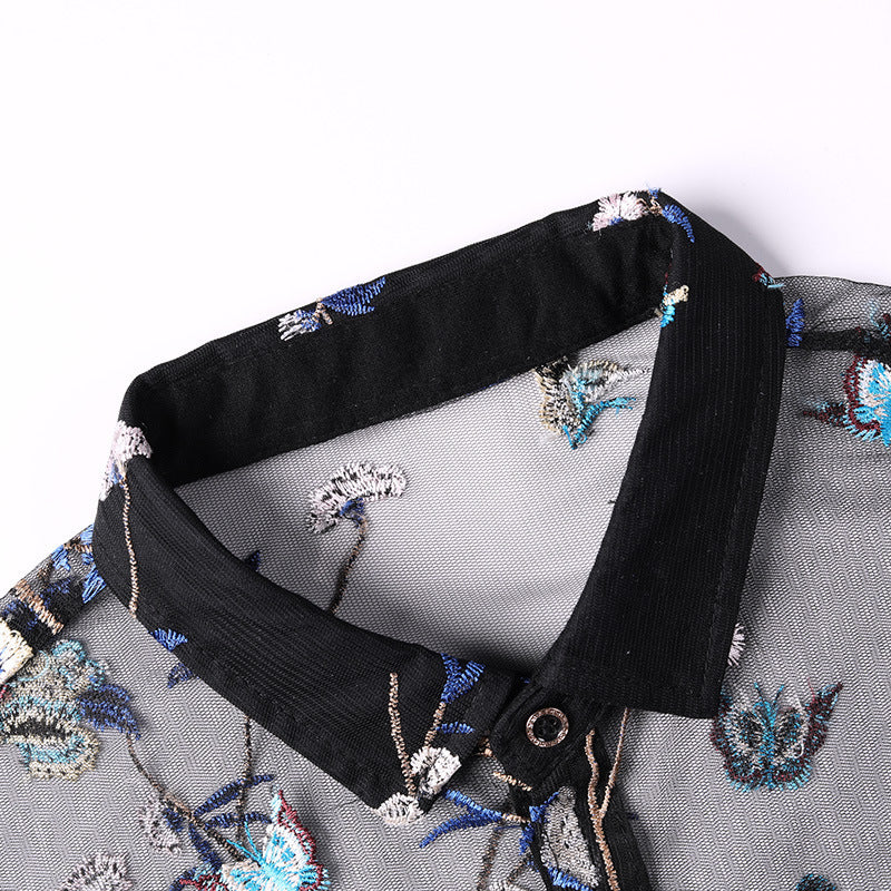 Men's Short-sleeved Floral Thin Hollow Non-iron Ice Silk Shirt