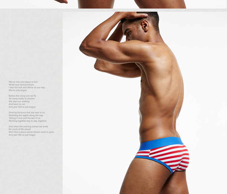 Product information: Pattern: stripes Color: sapphire blue, colorful blue, black, red Waist type: low waist Size: M,L,XL Style: briefs Fabric... Read more