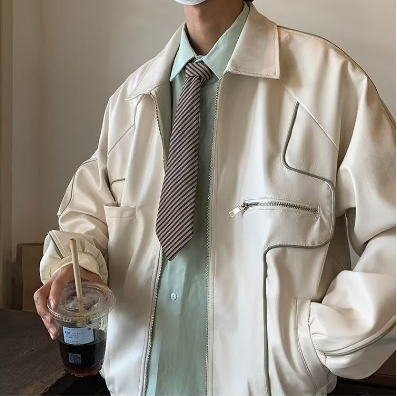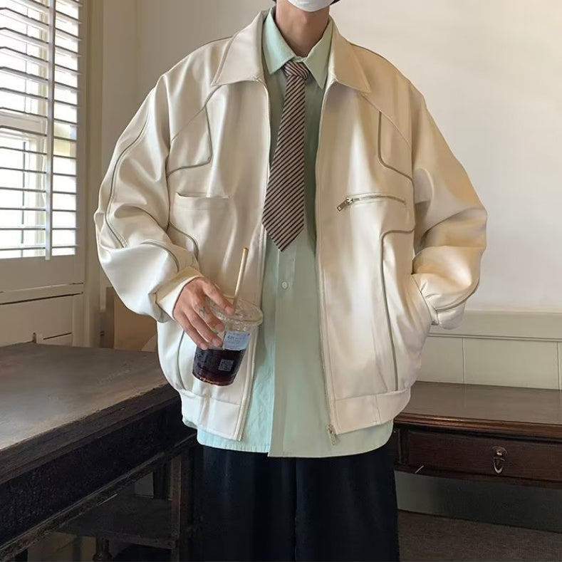 Men's Temperament Zipper Fashion Lapel Leather Coat