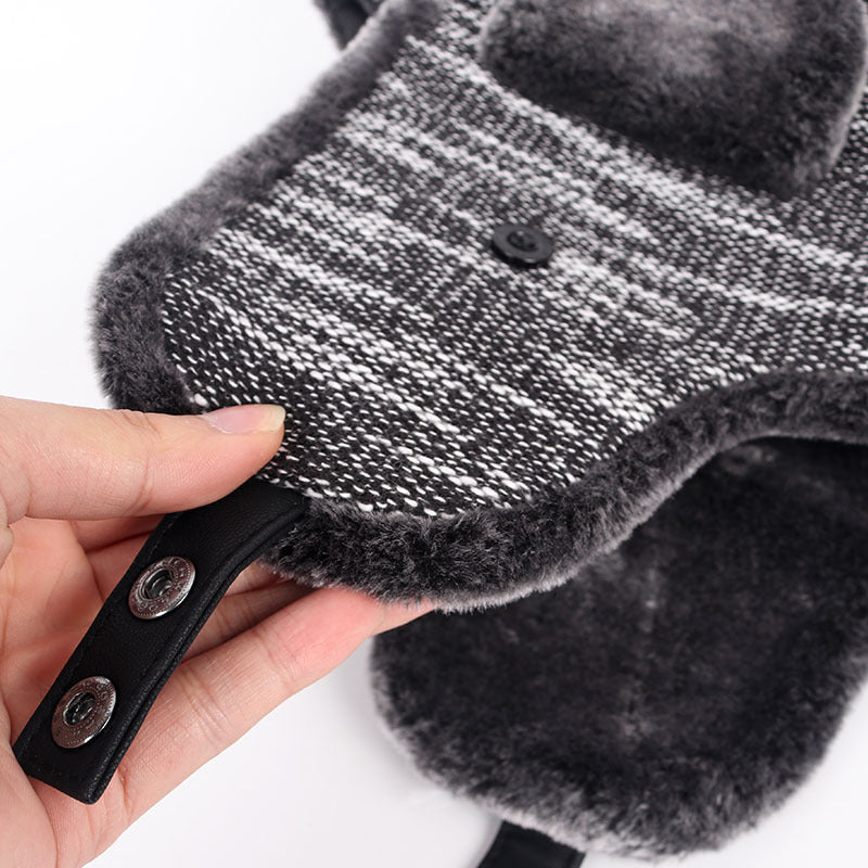 Middle-aged And Elderly Pu Leather Senior Hat With Velvet Warm And Windproof