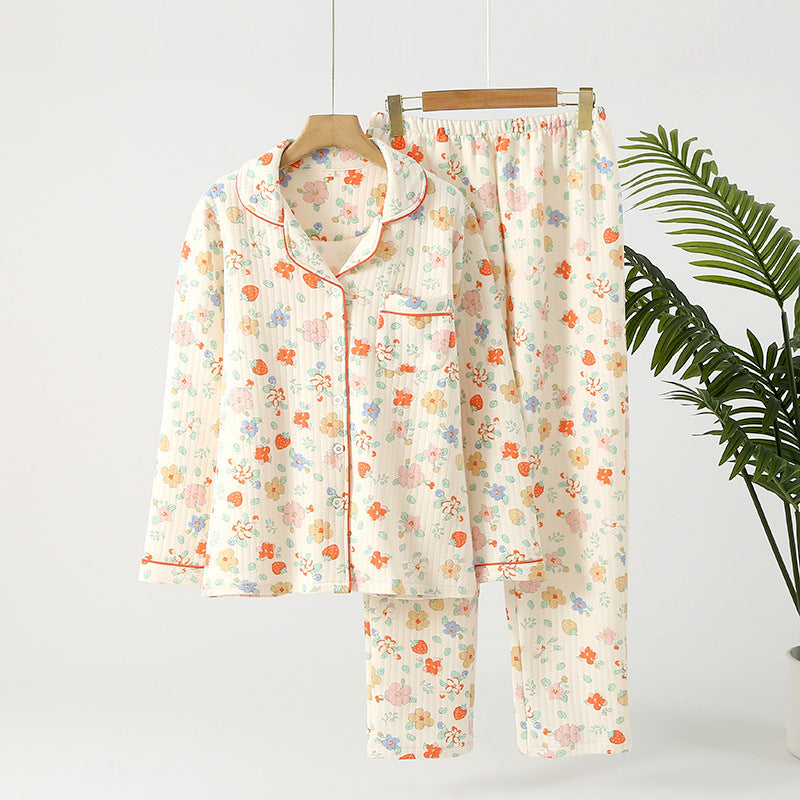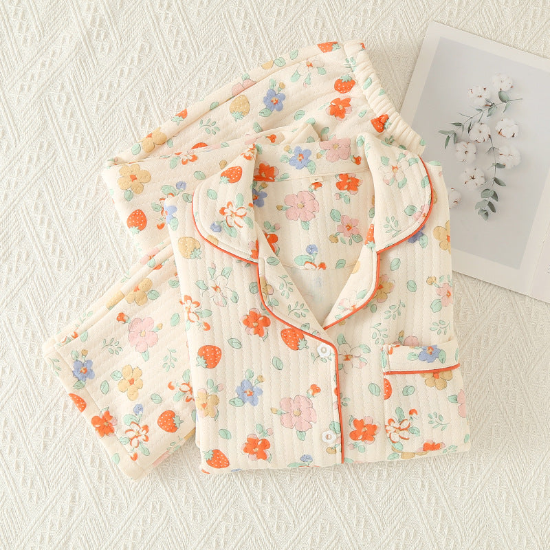 Pajamas New Quilted Three-layer Warm Women's Loose Lapels Homewear
