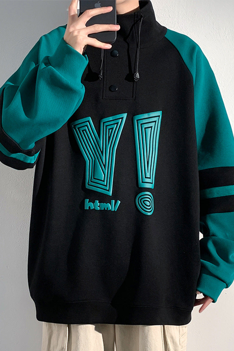 Plus Size Bubble Print Stand Collar Pullover Sweatshirt