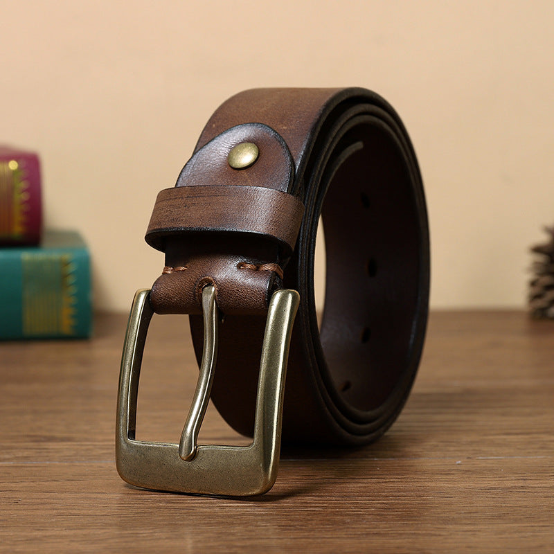 Retro Handmade Pure Copper Pin Buckle Cowhide Men's Belt