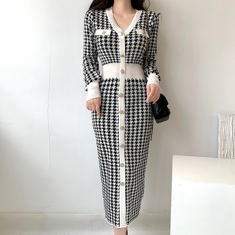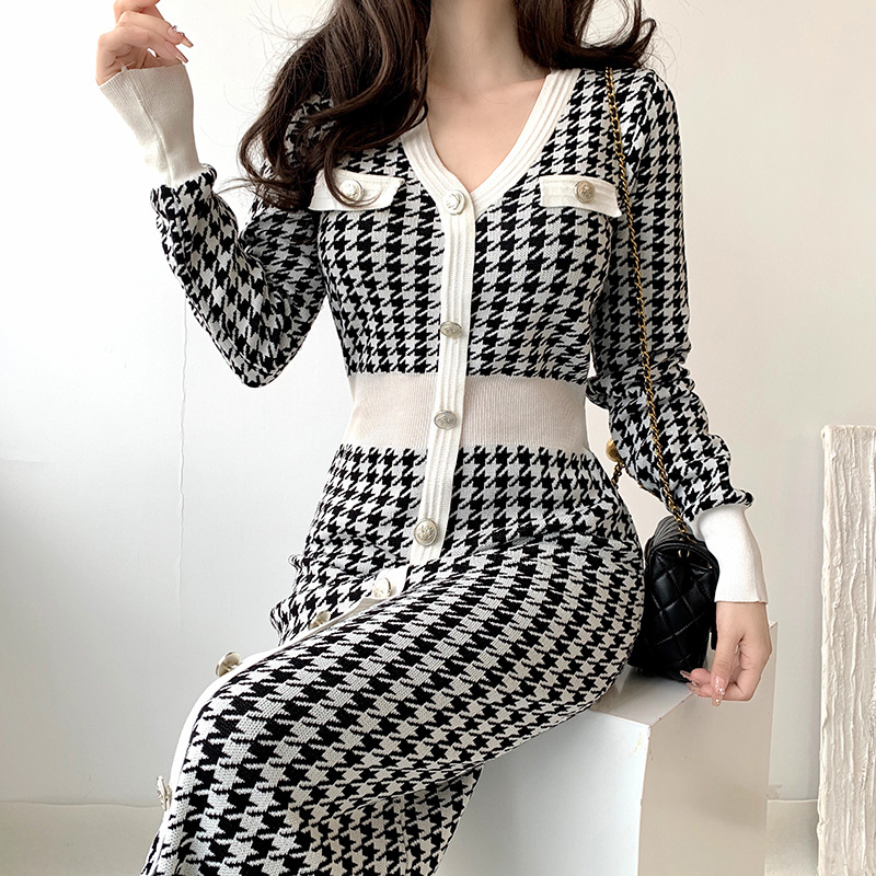Retro Slimming High-looking All-match Knitted Dress Women