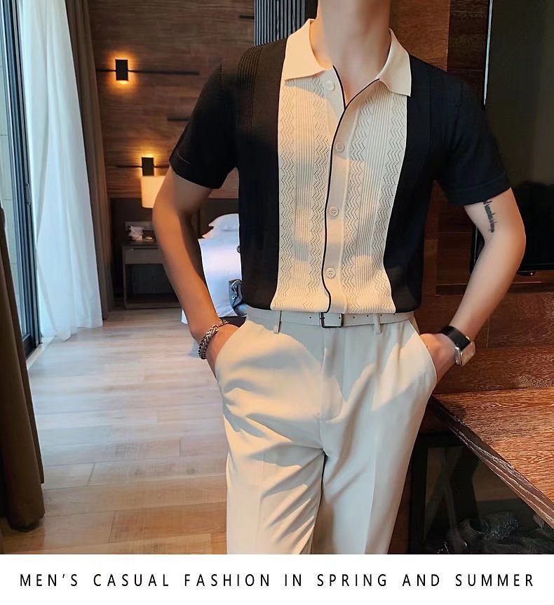 Short-sleeved T-shirt Men's Knitted Lapel Half Sleeve Bottoming Shirt Top