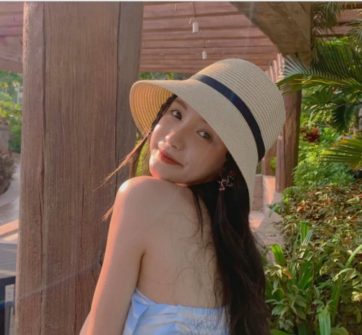 Straw Hat Women's Sun Hat With Foldable Bow And Ribbon Big Brim Hat