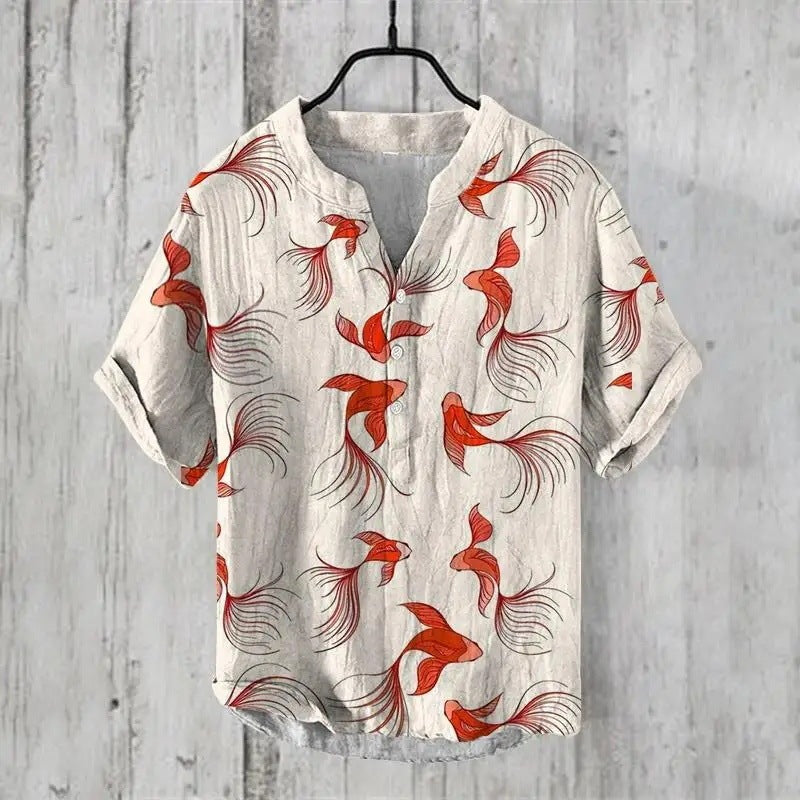 Summer Beach Casual Men's Clothing Short Sleeve V-neck