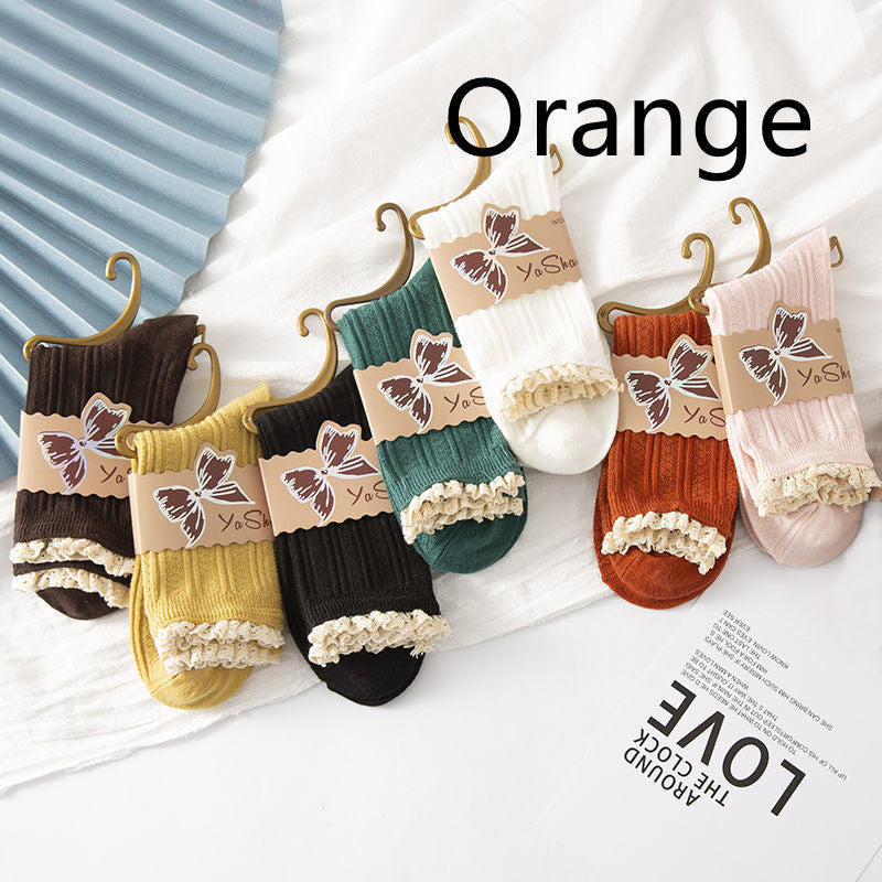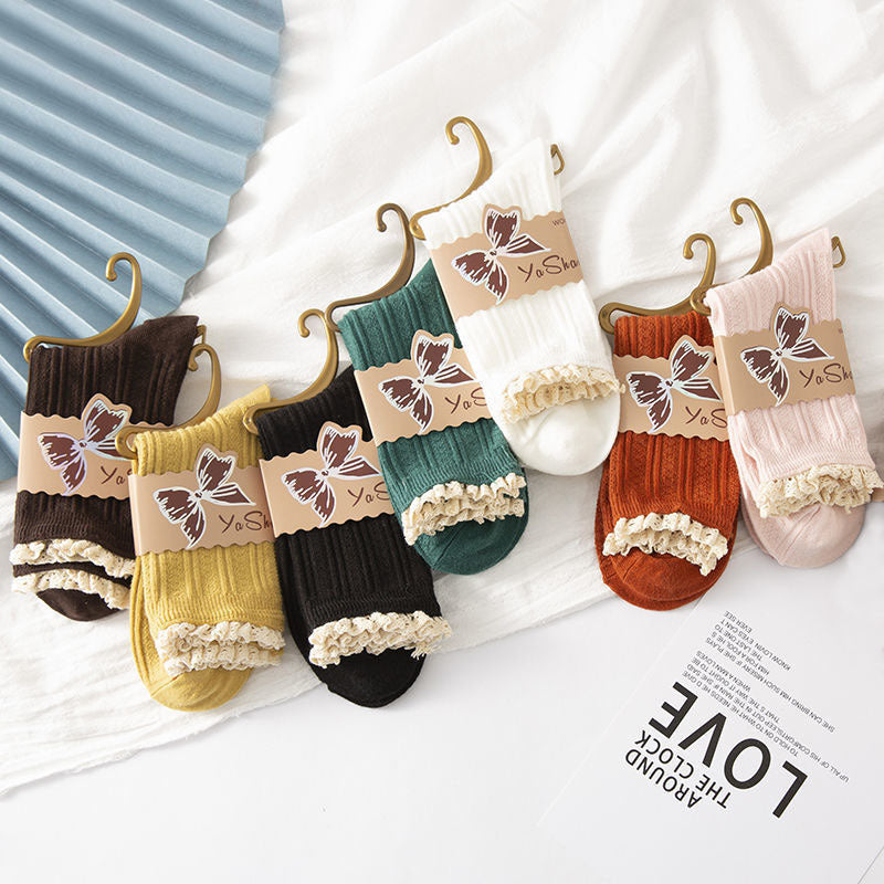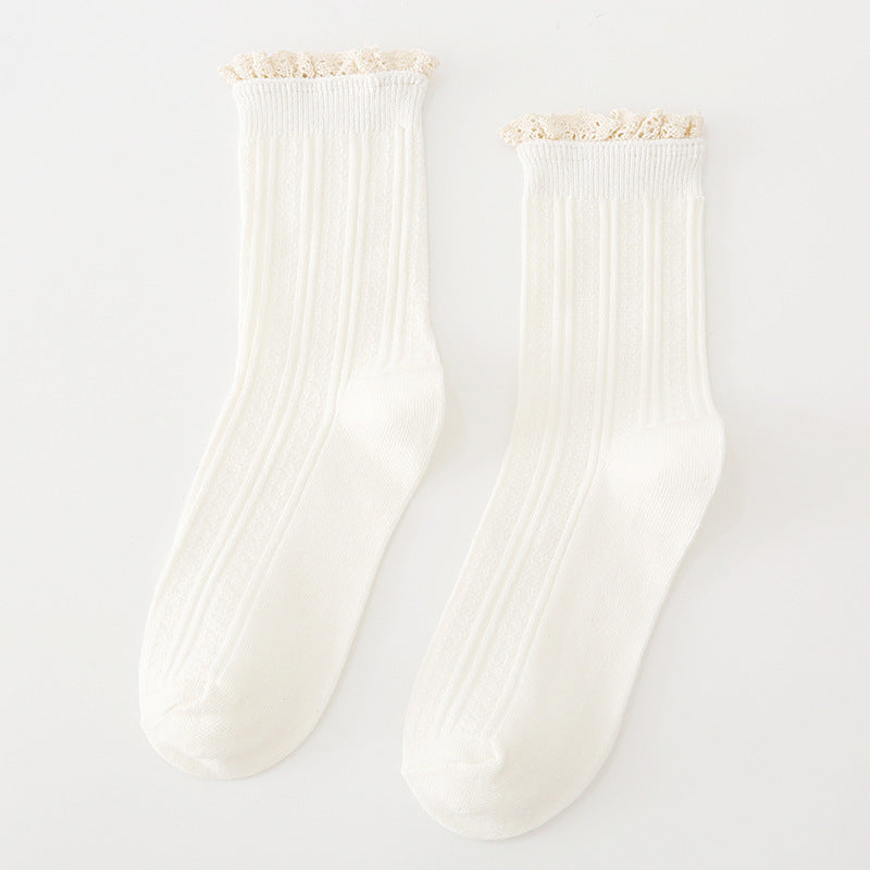 Sweat-absorbent Breathable Preppy Style Lace Mid-calf Socks