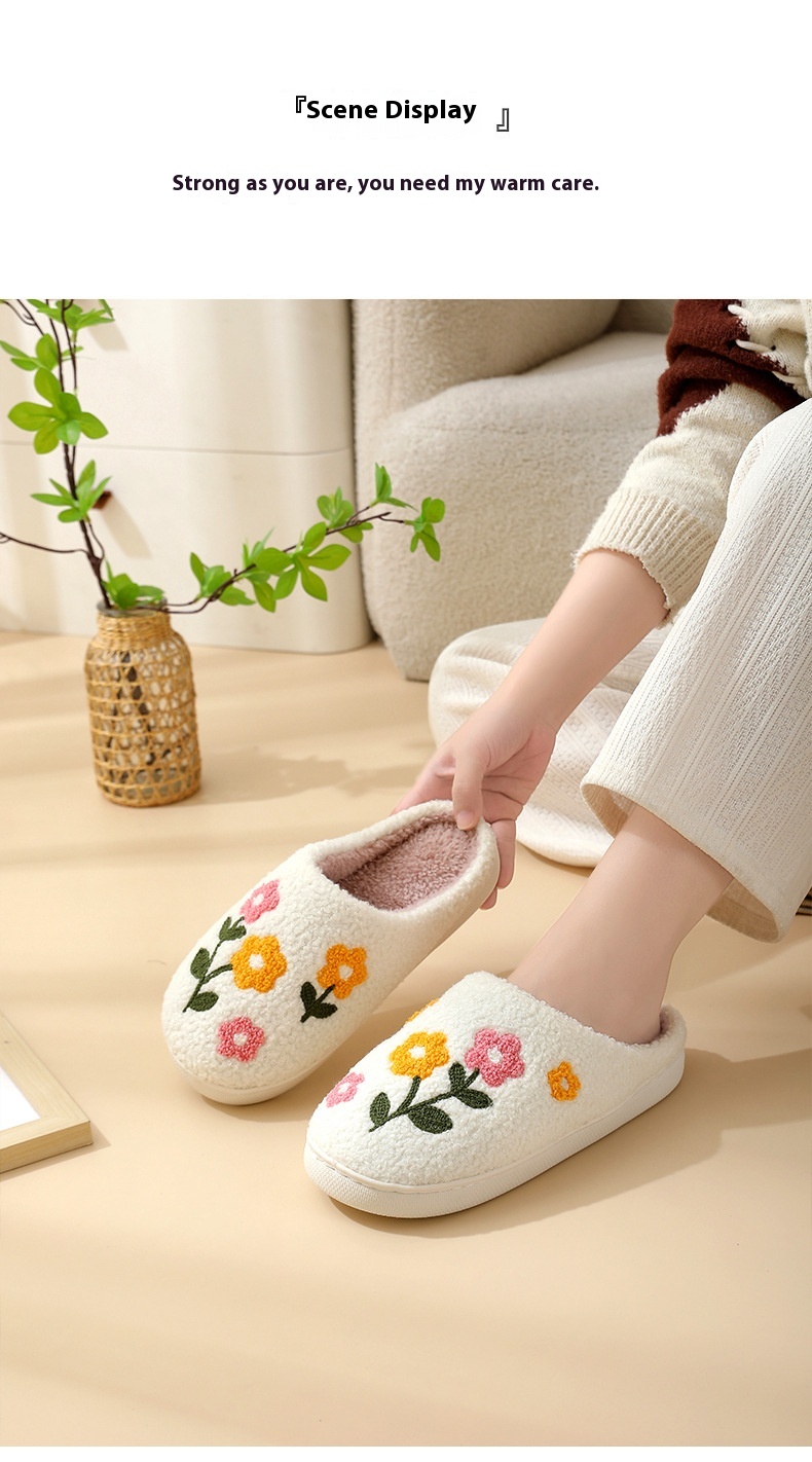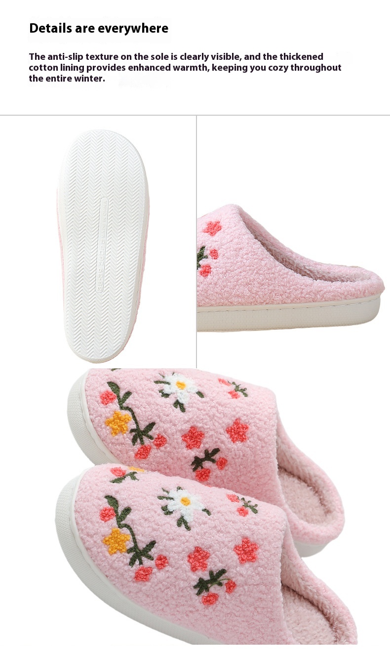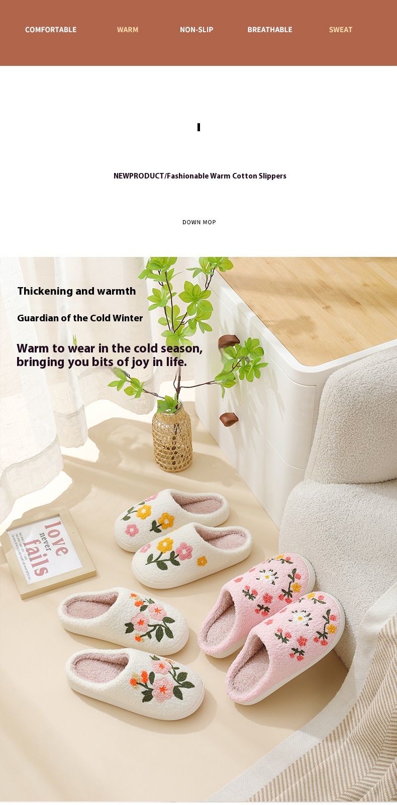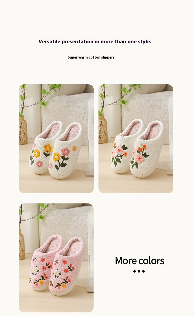 Three-color Flower Cotton Slippers Women's Warm Indoor Slippers