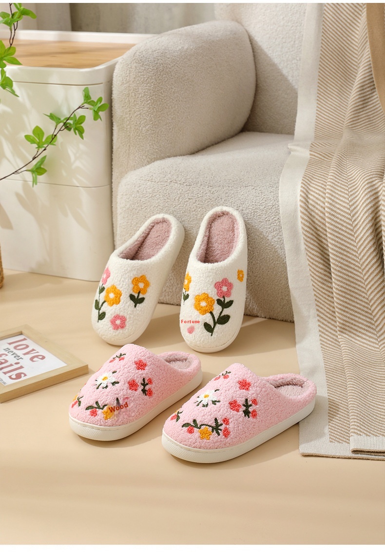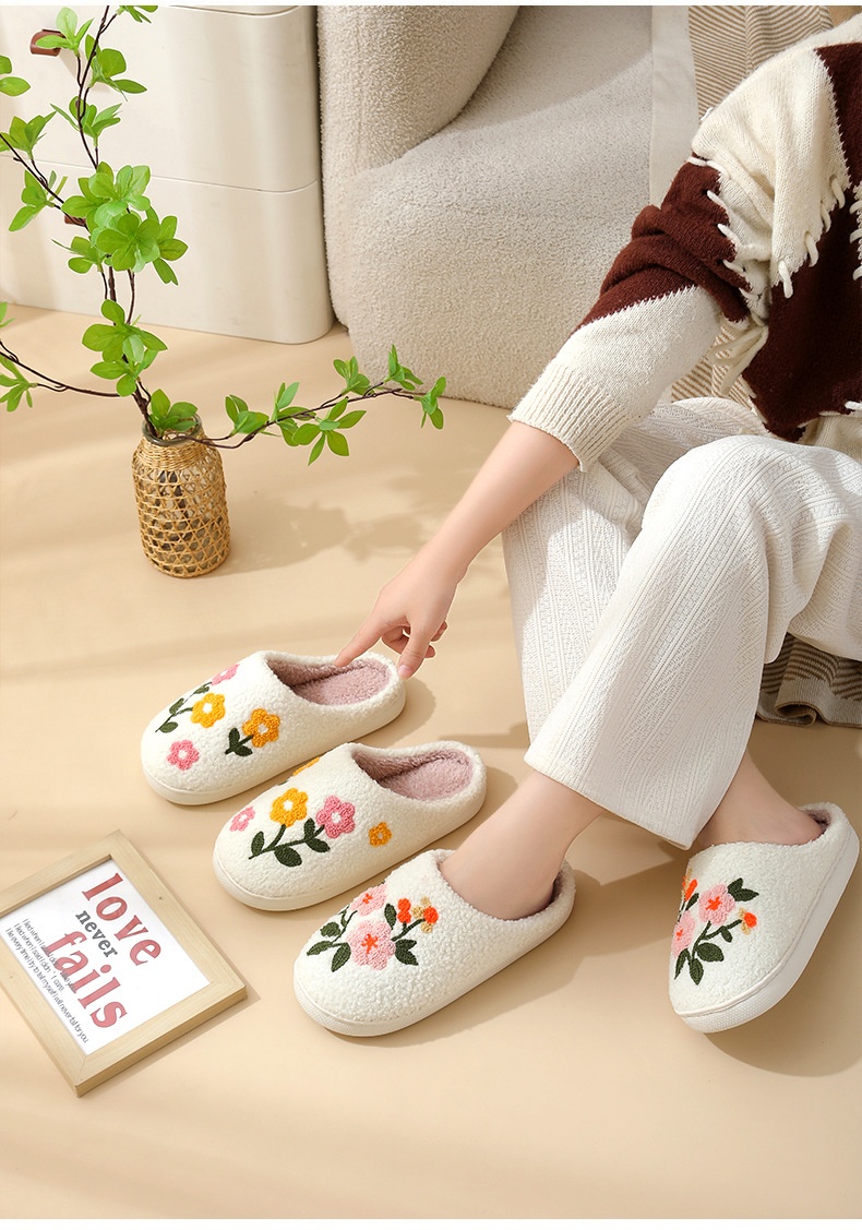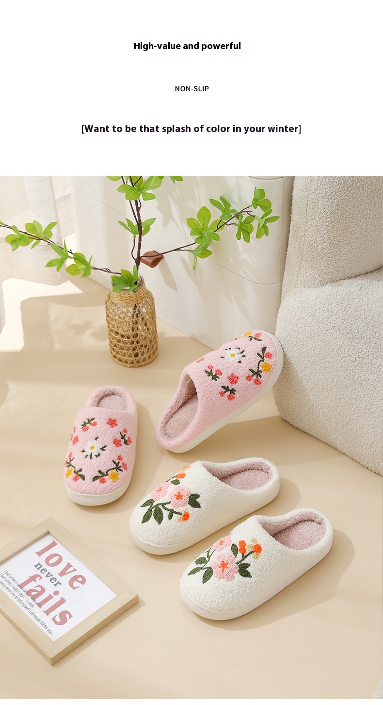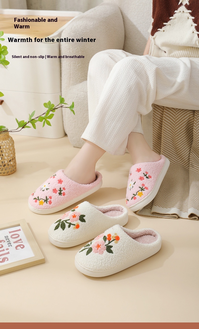 Three-color Flower Cotton Slippers Women's Warm Indoor Slippers