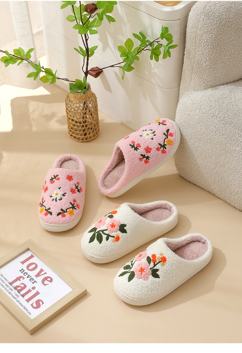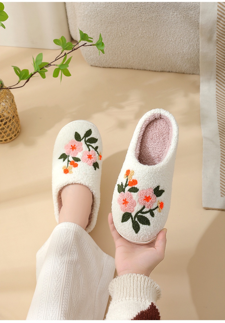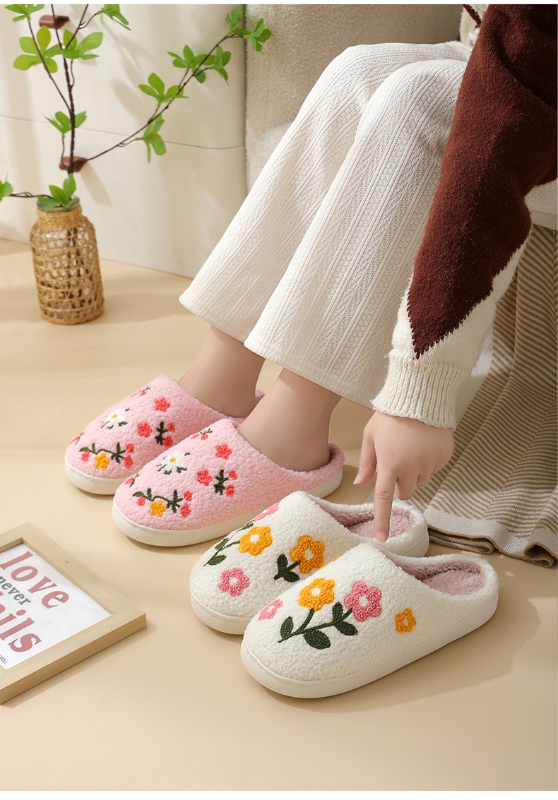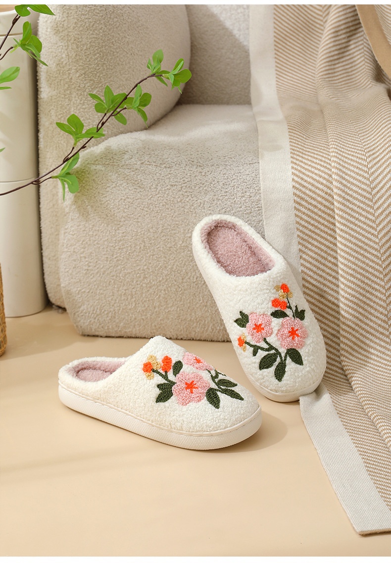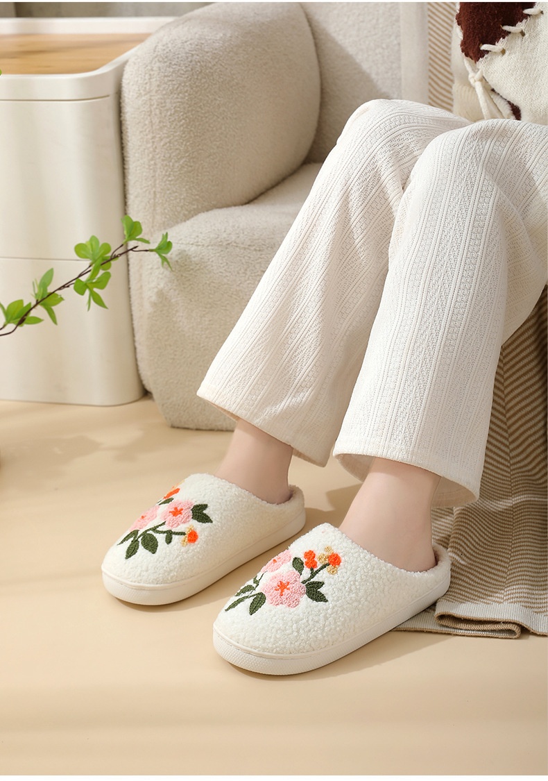 Three-color Flower Cotton Slippers Women's Warm Indoor Slippers