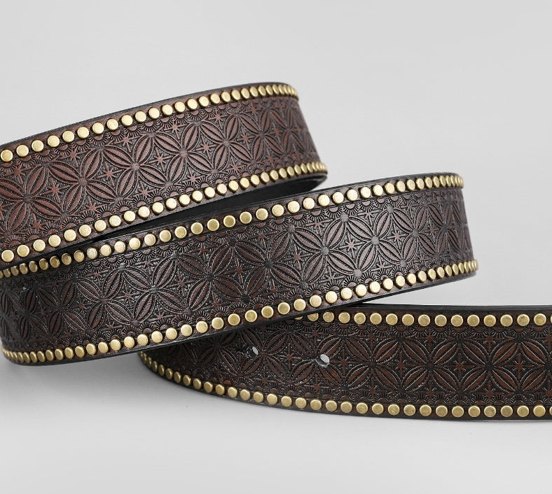 Product information: Processing Technology: antique, perforated, electroplated, antique Width: ordinary (2-4cm) Color: NZ0048,NZ0045,NZ0046,NZ0047 Belt buckle material: Alloy Size: 110cm /115cm/120cm/125cm... Read more