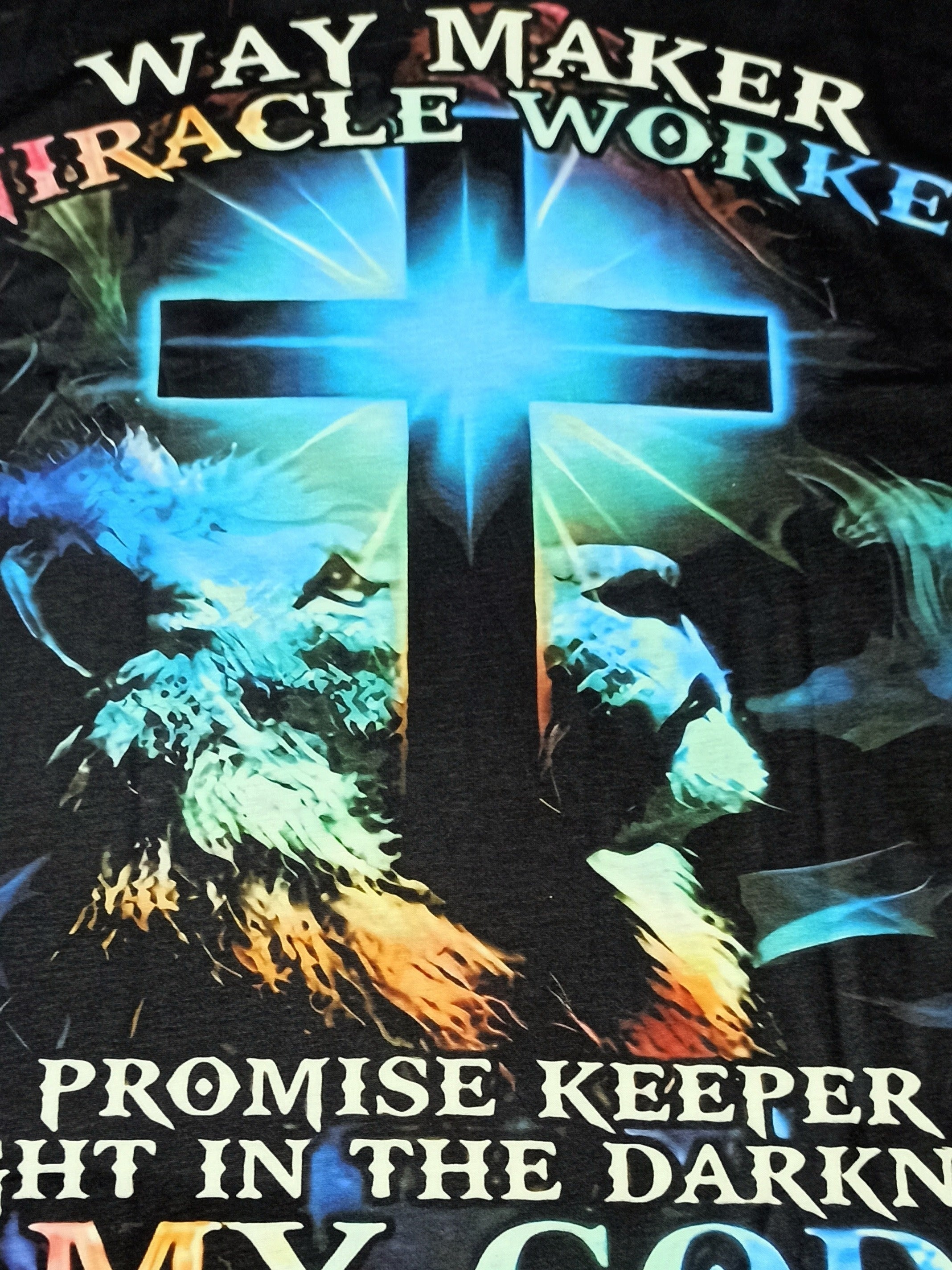 Way Maker Miracle Worker Pattern, Men's Fashionable 3D Digital Graphic T-shirt, Slightly Elastic And Breathable Retro T-shirt For Summer