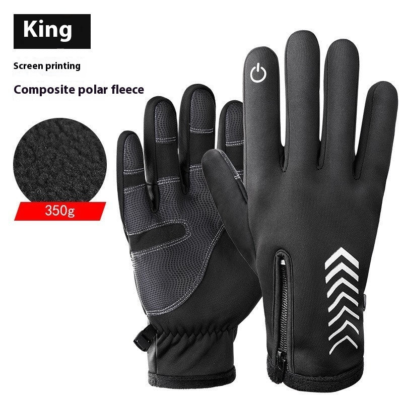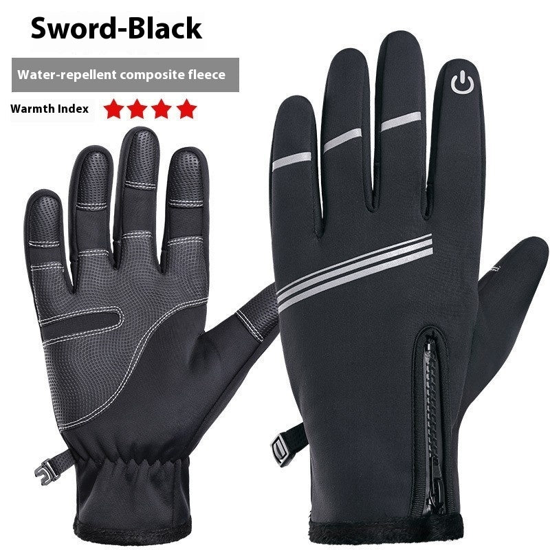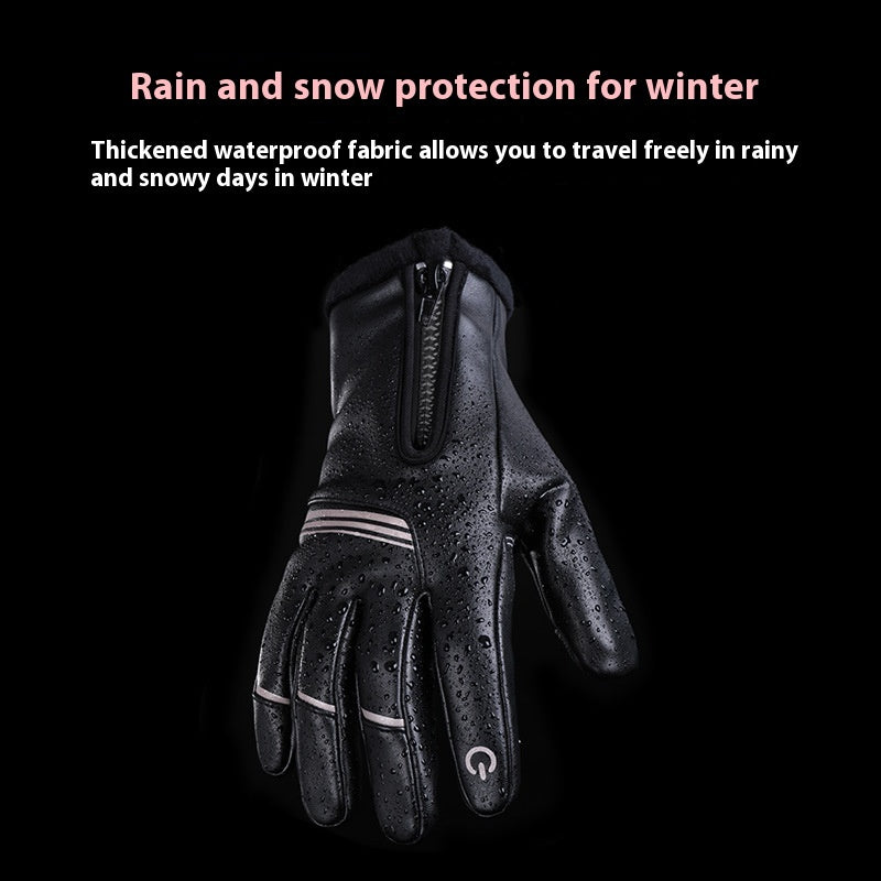 Winter Fleece-lined Thermal And Windproof Riding Leather Gloves